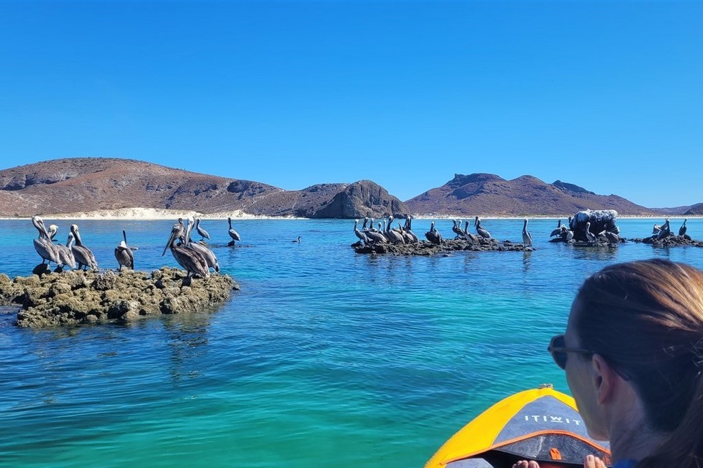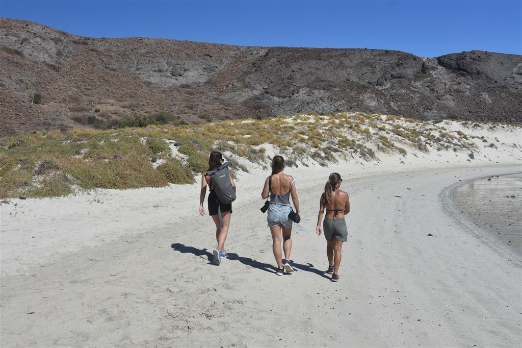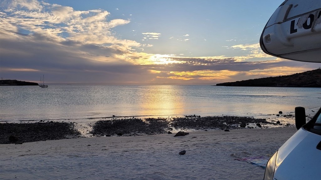 Les derniers jours des filles au Mexique se passent autour de La Paz. On alterne au niveau des plages et surtout, on cherche à se protéger du vent qui est très présent. On assiste au coucher de soleil au Cerro de la Calavera. Nous sommes tous déçus cependant de ne pas avoir pu nager avec les requins baleines qui sont trop peu nombreux cette année et les autorités ne donnent pas leur aval pour qu’on puisse aller les voir. On a plusieurs sons de cloches. Certains disent qu’ils sont déjà repartis et d’autres que les requins baleines commencent à délaisser la région car peut-être dérangés par le tourisme. En même temps, malgré l’interdiction de les approcher, on a lu que des tours étaient organisés illégalement. Malgré l'envie de les voir, on n'adhère pas à ces stratagèmes.