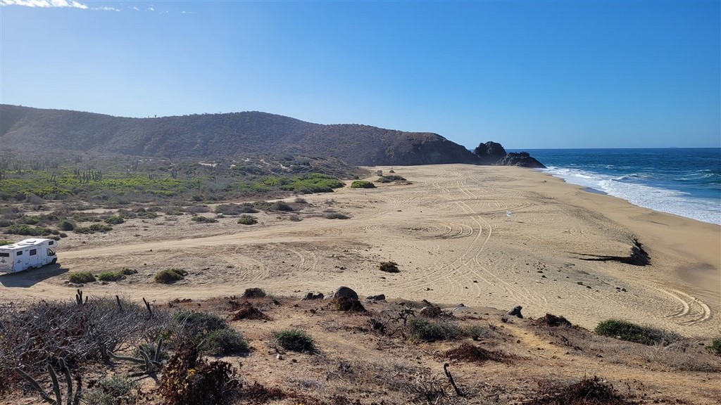 En attendant nos filles qui arrivent dans une semaine, on fait un tour pour repérer quelques spots et profiter des plages. Les bivouacs nous changent de ce qu’on a vécu dans le Mexique intérieur. Il est facile d’en trouver et il n’y a personne. Et puis, on adore voir les baleines depuis les plages.