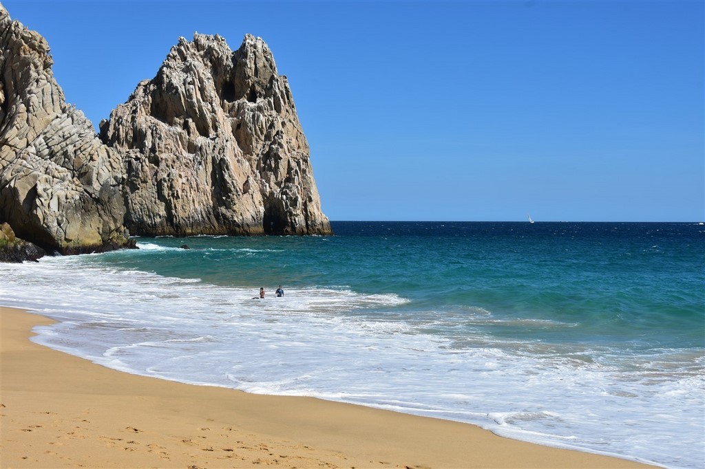 San Lucas de Los Cabos est une ville bien touristique pleine d’américains et nous prenons comme tous les autres le bateau avec gilet de sauvetage pour admirer l’arche et quelques points de vue. La baignade dans les vagues confirme que l’eau n’est pas chaude.