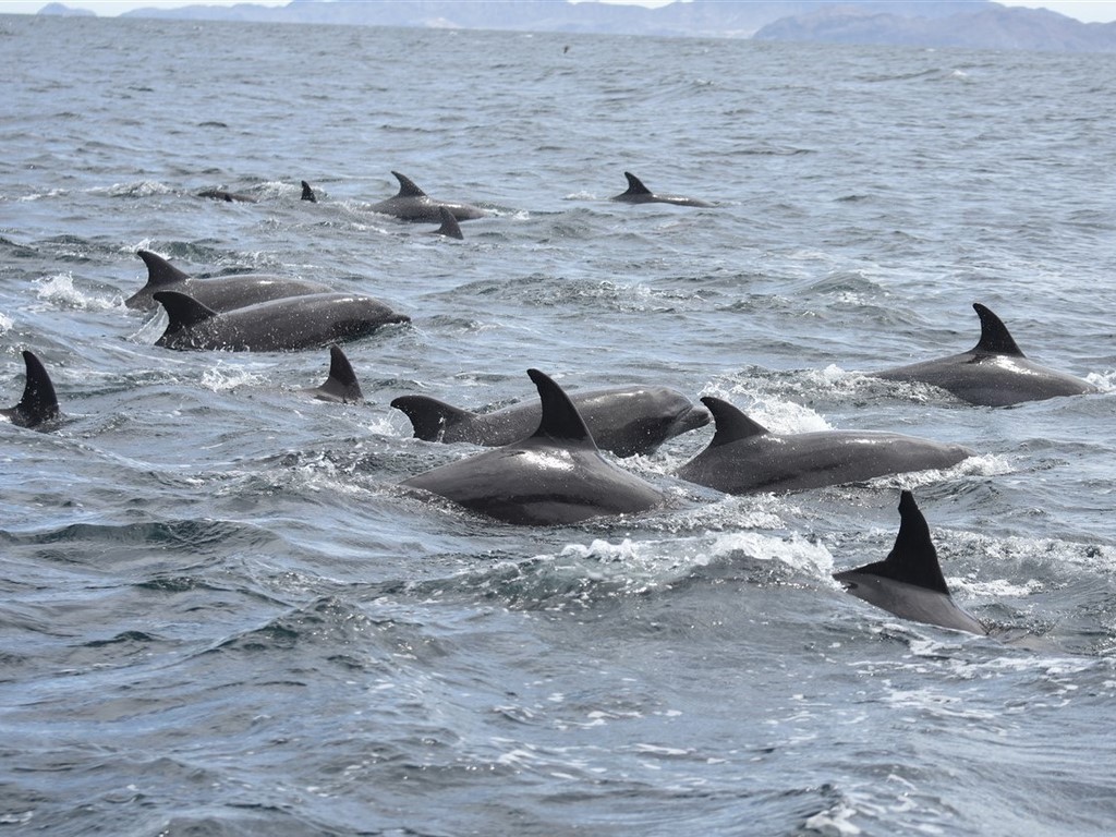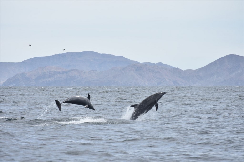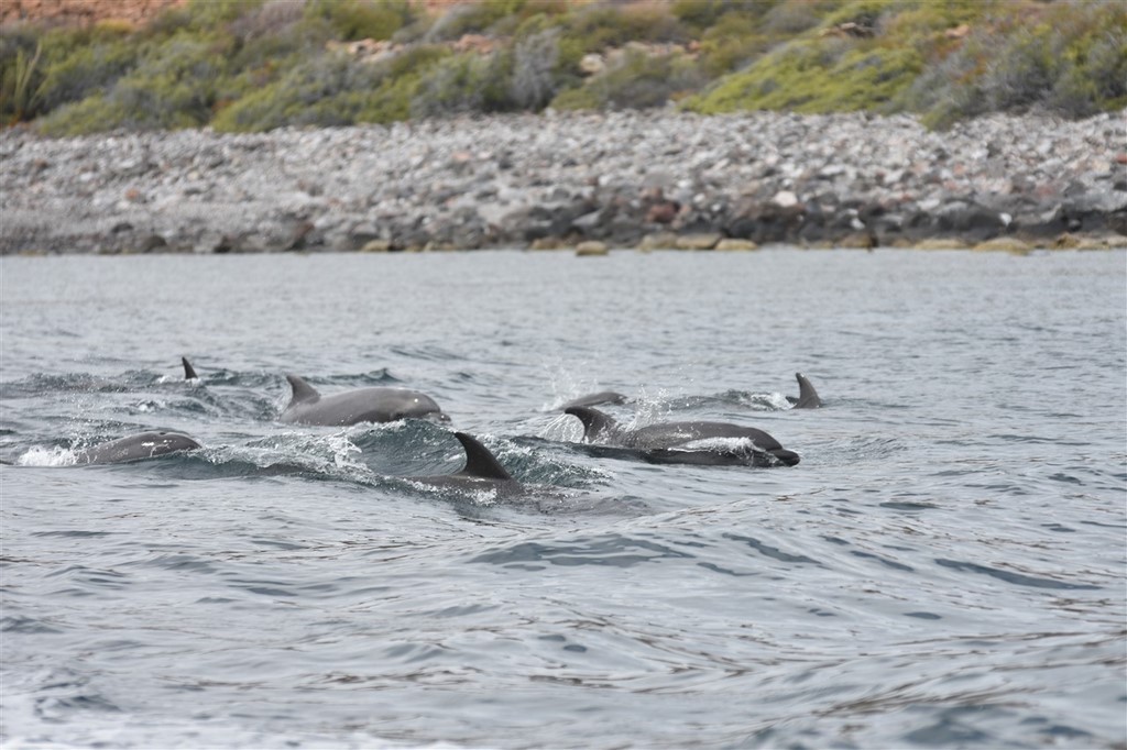 On repart vers La Paz et sur le chemin à Loreto, on reprend notre bateau pour cette fois-ci aller voir les baleines bleues, le plus gros animal vivant sur terre. On en approche quelques-unes d’assez près mais leur apparition est très furtive. Cependant, les loups de mer et dauphins sont toujours là. Le temps n’est pas chaud, heureusement que nous nous sommes couverts pour cette sortie de 6h sur l’eau.
