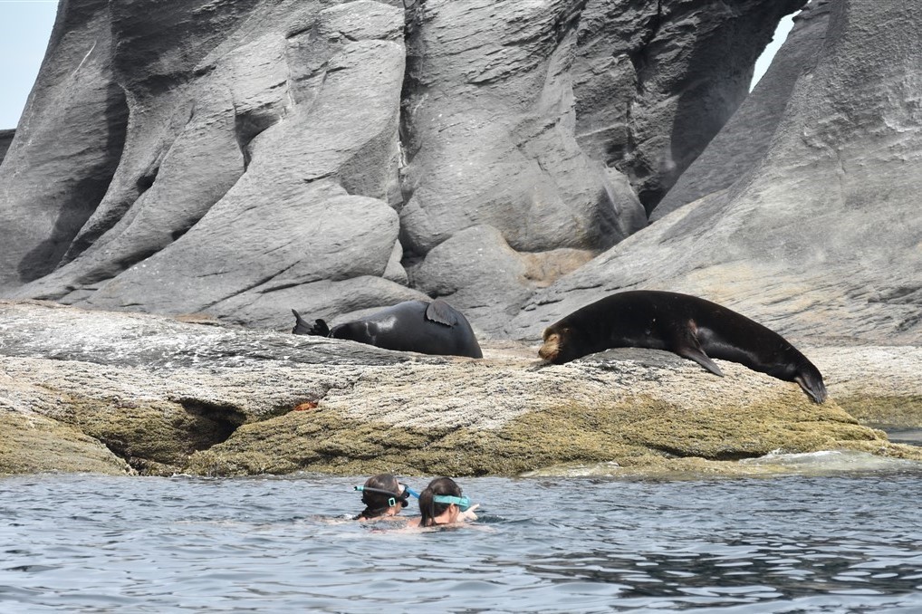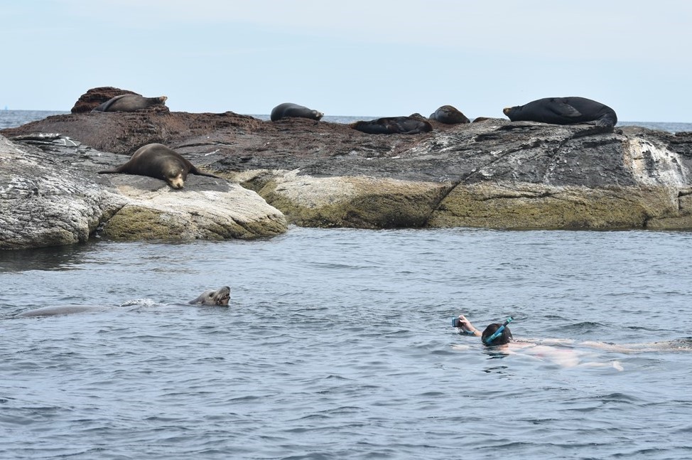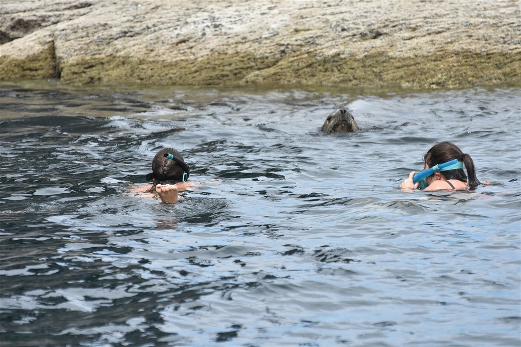 Nous prenons un bateau pour aller visiter l’ile de Coronado et ce qui restera un merveilleux souvenir à Marion et Julie. Dans un premier temps, nous sommes accompagnés par un groupe de dauphins. Puis, les filles se jettent à l’eau pour aller nager avec les loups de mer. Elles alternent entre crier de peur quand ils s’approchent d’elles et se rapprocher au plus près pour mieux les voir. On les admire de s’être baignées dans une eau à 17°C.