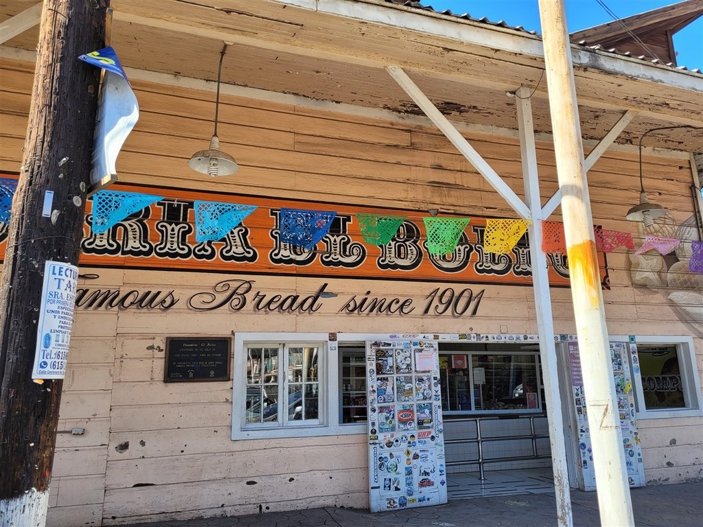 Nous passons par Santa Rosalia. Les maisons sont colorées, en bois et possèdent des balcons. Le tout est un peu décrépi. C’est une ancienne ville minière qui exploitait le gypse, fondée par des ingénieurs français. Son attraction touristique est l’église Santa Barbara construite par Gustave Eiffel pour l’exposition française en 1889. Elle a été de nombreuses fois déplacée, en Europe et démontée jusqu’à être transportée définitivement à Santa Rosalia. On fait le tour mais on ne s’y attarde pas plus que ça.