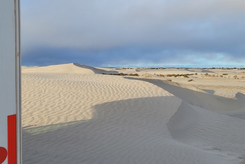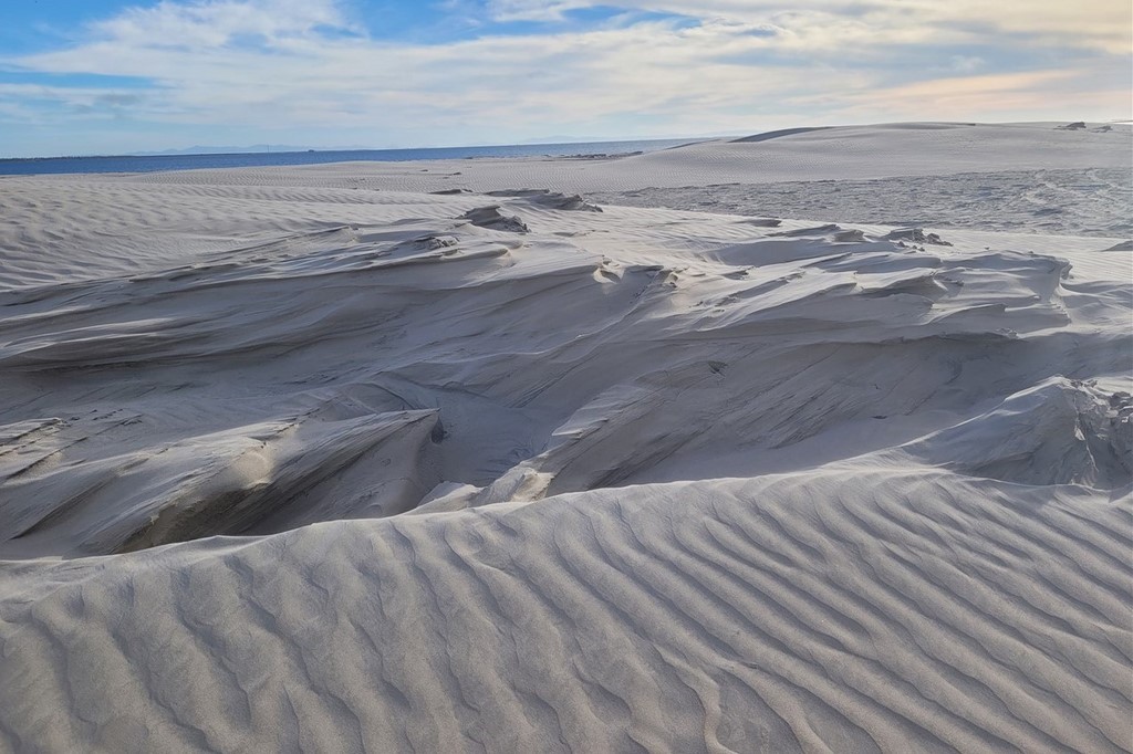 Nous aimons beaucoup les dunes de Soledad près de Guerrero Negro. Nous y passons une très bonne nuit à leurs pieds. Un bon footing nous défoule le lendemain matin mais le temps n’est pas génial. Il fait gris puis c’est pluvieux, on ne s’attarde pas.