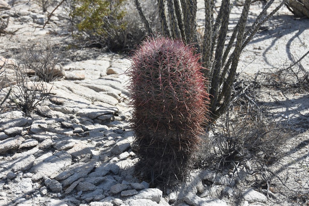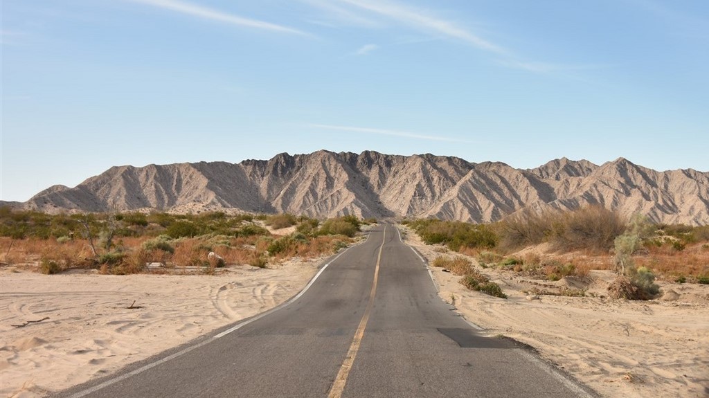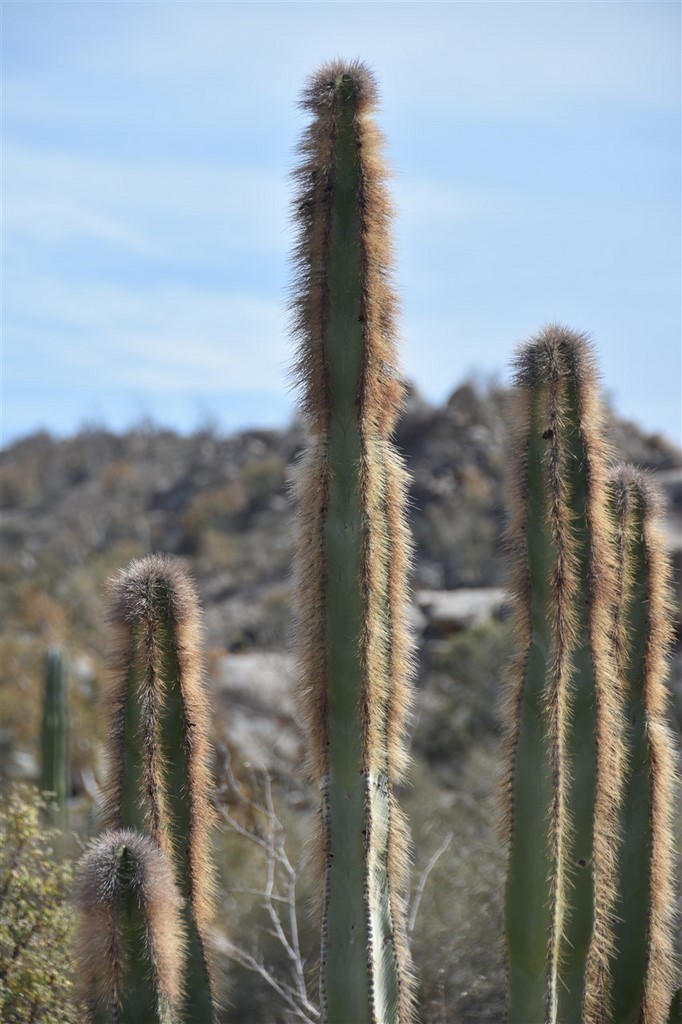 Nous décidons de continuer la remontée par l’est de la péninsule et de passer la frontière à Mexicali. Le paysage est un défilé de cactus et nous sommes obligés de nous arrêter à plusieurs reprises pour prendre des photos. Il y en a une grande variété de cactus dont on ne connait pas les noms. Il y a des tout petits, des grands filiformes avec parfois un bras ou deux, des cactus rouges et des cactus communs enfin ceux que l’on voit sur les images de paysages du Mexique. Pascale se balade toute seule dans cette forêt, Pascal faisant la sieste. Elle photographie dans tous les sens quand elle voit un coyote, noir et gris comme un loup, courir vers elle. Elle le voit avant qu’il ne la voie. Il file en ligne droite vers elle. Surprise, elle ne sait pas si elle doit crier « au secours Pascal », prendre l’appareil photo, le téléphone ou s’enfuir à toutes jambes. Mais soudain, le coyote l’aperçoit, il fait volte-face et c’est lui qui s’enfuit à toutes jambes. Qui a eu le plus peur entre l’un et l’autre ?