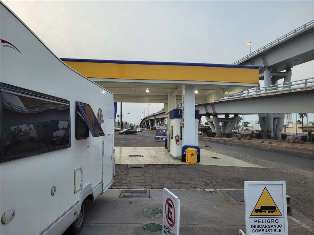 Et c’était sans compter sur la poisse. Pascal veut écouler les derniers pesos et fait le plein d’essence. Il demande à la station « diesel por favor, lleno » (Diesel svp, le plein) comme il le fait depuis cinq mois. Le prix affiché n’était pas trop cher et proche de la frontière. Eh bien, la serveuse remplit 17 litres d’essence avant que Pascal ne s’en aperçoive et coupe la distribution. On est tombé sur le gros quiproquo. La personne ne comprend pas car la station ne vend que de l’essence. Mais pourquoi la station affiche-t-elle le prix du diesel sur le grand panneau à l’entrée, pourquoi y a-t-il un pistolet noir diesel avec le prix dessus ??? Pascal ne démarre pas le camping-car même si la serveuse « si si, allez-y, il n'y a pas de problème ». Trouver un mécanicien qui effectue la purge du réservoir au ¾ s’avère difficile. On remet du diesel qu’il faut aller chercher ailleurs… et Dédé ne redémarre pas. On passe la nuit à la station entre deux voies rapides et le train. L’horreur ! Le stress ! On n’en peut plus de ce camping-car. La station nous abandonne à nos tourments. Un garagiste devait venir nous chercher avec une dépanneuse mais après l’avoir attendu quatre heures, il a dû s’enregistrer aux abonnés absents. Heureusement, le magasin de pièces détachés AutoZone s’intéresse à notre problème quand nous y allons en plein désespoir, le dimanche. Cela fait trente heures que nous sommes sur la station et demain est férie en plus. En deux coups de téléphone, ils nous dégottent un vrai, gentil, efficace, professionnel, mécanicien, Alejandro. Il arrive sur place avant nous, il est avec sa femme. En un quart d’heure, il redémarre Dédé et nous répond quand on lui demande combien on doit le payer : « mais ce que vous voulez ? ». Merci Alejandro !!!
