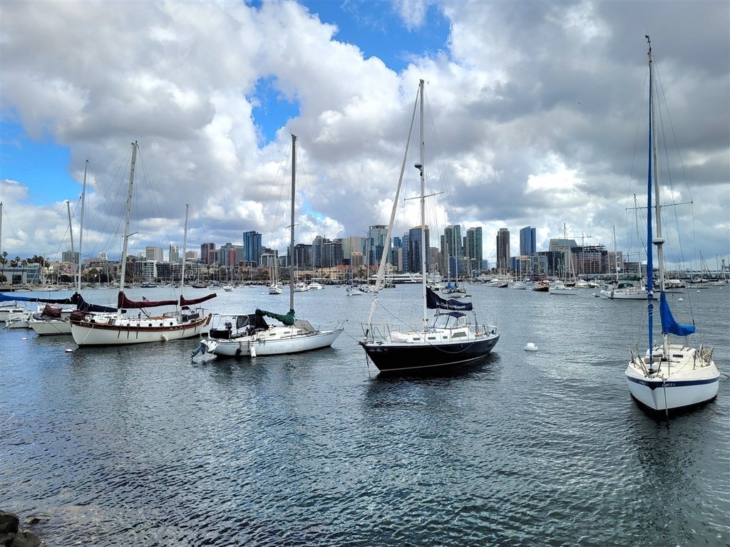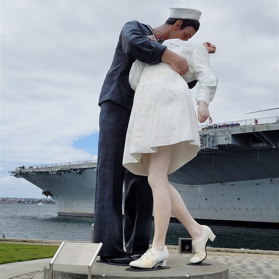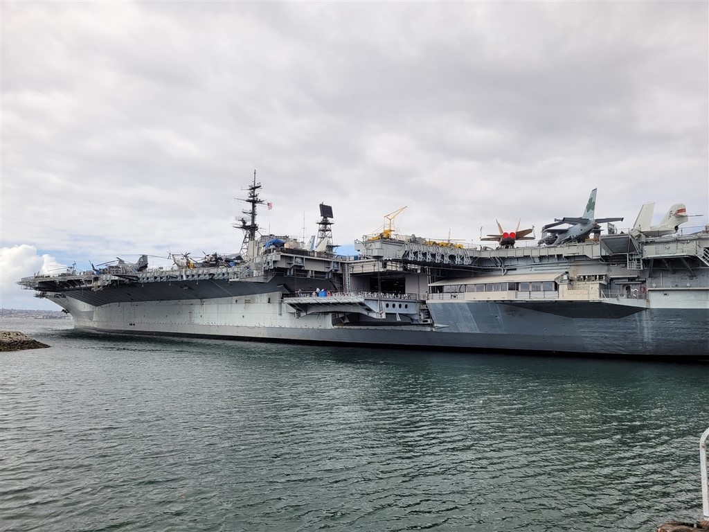 A San Diego, nous commençons à comprendre ce que nos amis voyageurs nous avaient annoncé : la côte Californienne n’accepte pas les camping-cars dans les villes. Après avoir fait le tour, on trouve enfin une petite rue, où il n’y a pas d’interdiction, près d’une marina. C’est donc à vélo qu’on ira découvrir la ville. Nous allons voir l’USS Midway, puis la ville qui ne nous botte pas plus que ça.