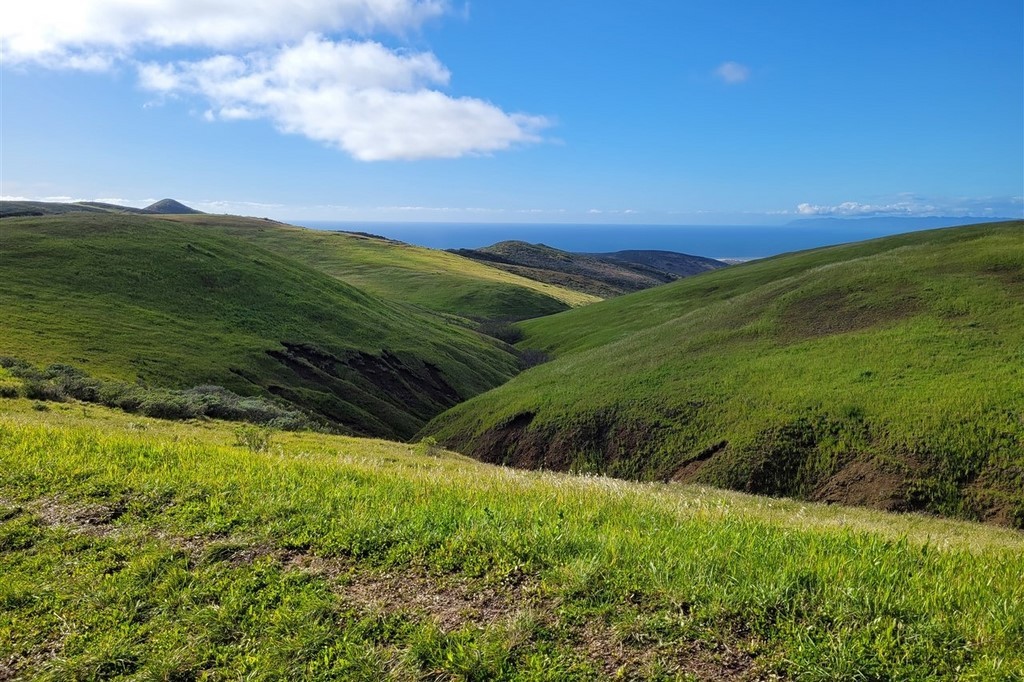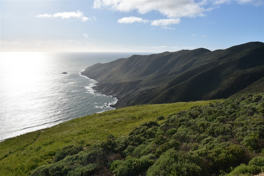 Sur la remontée vers le nord, Pascale s'émerveille du paysage, avec les collines vert pomme et une balade à Point Sal nous ravit tout autant. En plus, du vert des collines, s’ajoutent le bleu de la mer et du ciel et le blanc des nuages. Le long du chemin, les oiseaux piaillent mais étonnement nous entendons des grillons et des grenouilles. Ce saut dans la nature est vivifiant et apaisant.