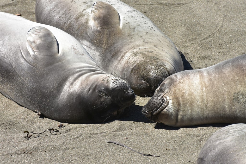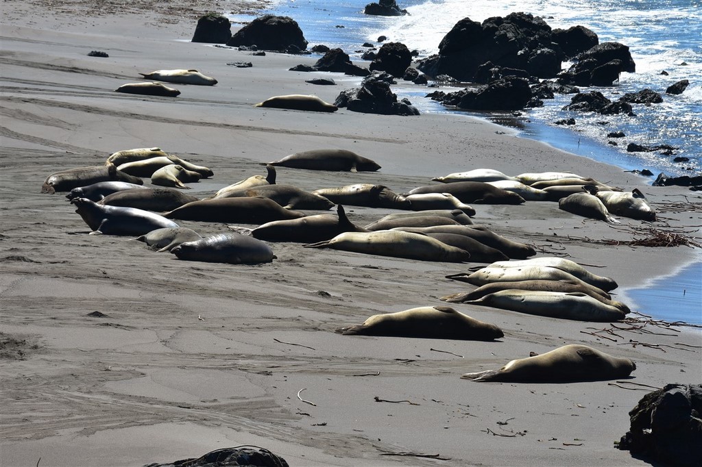 Nous voici en direction de Big Sur par la Highway 1, la route qui longe le littoral. On s’arrête à Point Piedras Blancas pour y voir des éléphants de mer étalés sur le sable. La population est de 25000 éléphants de mer sur la côté et des centaines sont présents rien que sur ce site.