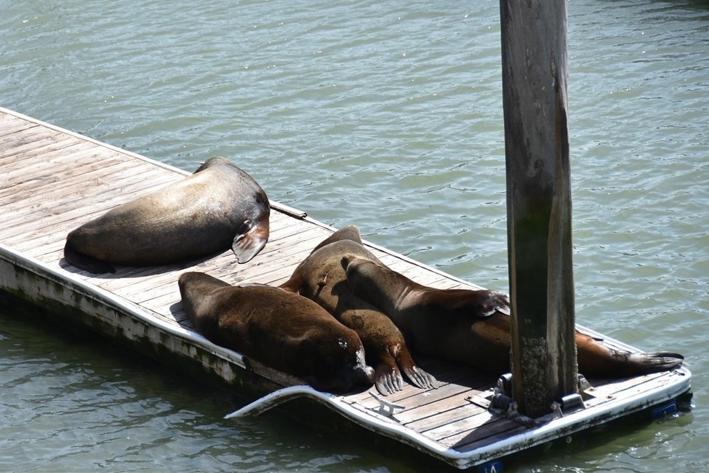 A Monterey, nous bivouaquons sur les places de stationnement face à l’océan, ce qui permet en plus des éléphants de mer de découvrir des loutres de mer. Trop mimis quand elles se mettent sur le dos. La photo reste difficile car elles sont loin.
