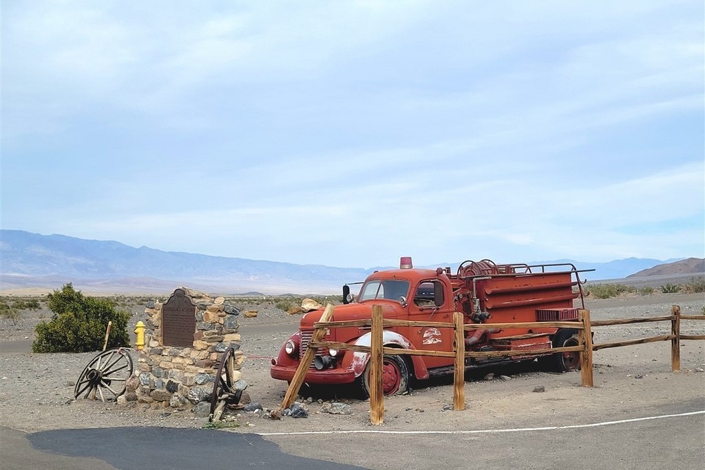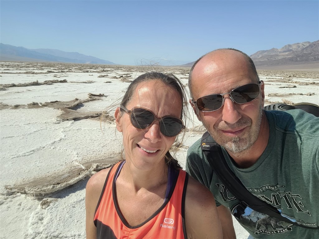 Au bout de quatre jours, on rend la voiture dont on a bien profité et récupérons Dédé pour continuer notre route vers Las Vegas. On passe par le Parc National de Death Valley, la Vallée de la Mort. Pour rentrer dans le parc, la route s’élève de 1000 mètres en peu de kilomètres. Pascal stoppe dans la montée car Pascale sent une odeur. Elle s’affole toujours pour un rien à présent. Mais effectivement le moteur a chauffé. Mais ce n’est rien, on repart. On apprendra plus tard que cette route est interdite aux camping-cars l’été, pour prévenir des problèmes de surchauffe. La descente est aussi pas mal : on ne prend pas de risque et un arrêt au milieu laisse le temps aux freins de refroidir. Pour une fois, on dort dans le parc national.