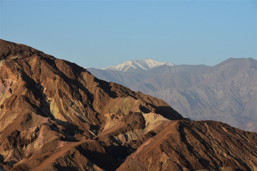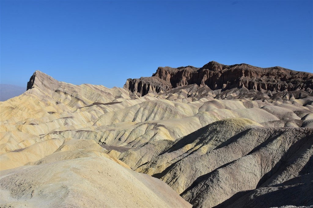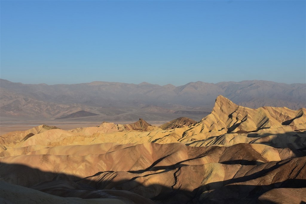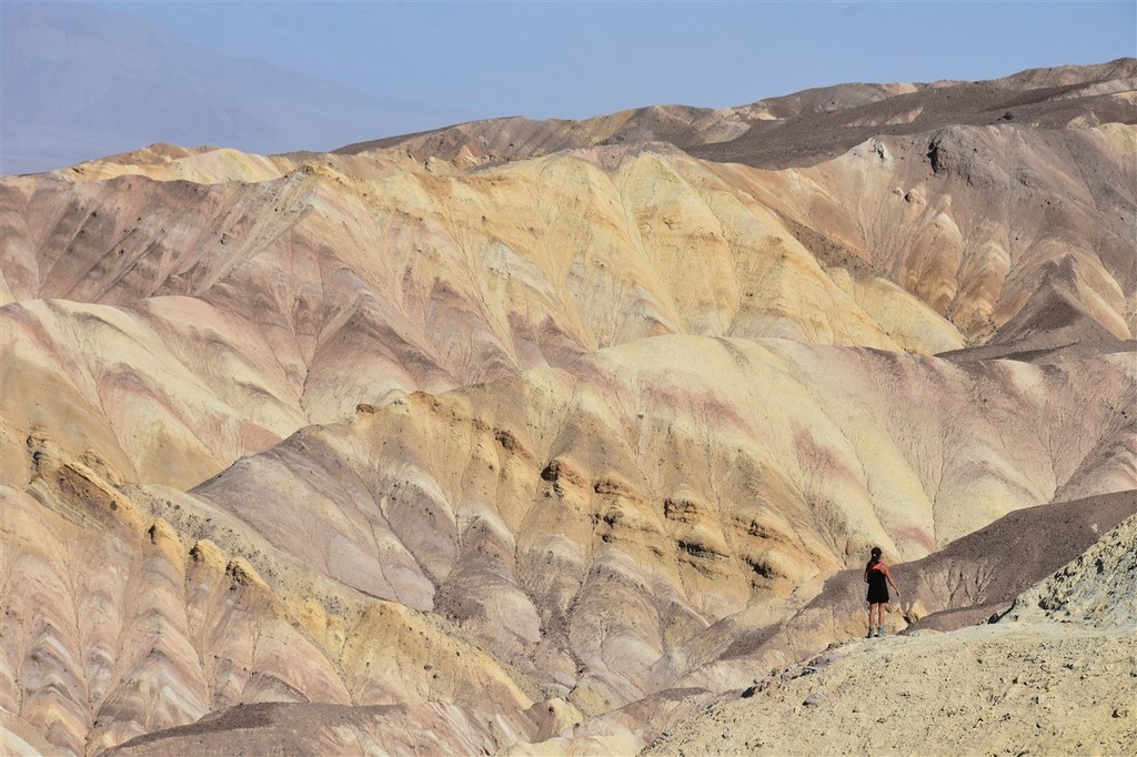 On est toujours là pour le lever du soleil mais à Zabriskie Point. La vue à 360°C est magique et les couleurs des collines ocres, marrons, jaunes…. On adore. Une belle rando de douze kilomètres parmi ces couleurs fera sentir qu’il ne ferait pas bon de s’y attarder au mois d’août : ce n’est pas pour rien que la vallée s’appelle la vallée de la mort.