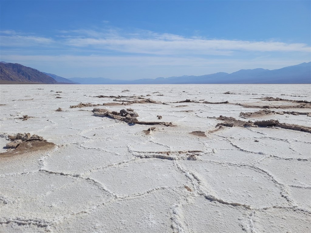 Nous nous rendons à Badwater, une immense étendue de sel. Enfin, immense, ce n’est pas le Salar d’Uyuni mais c’est le point le plus bas des États-Unis, à -86m en-dessous du niveau de la mer.