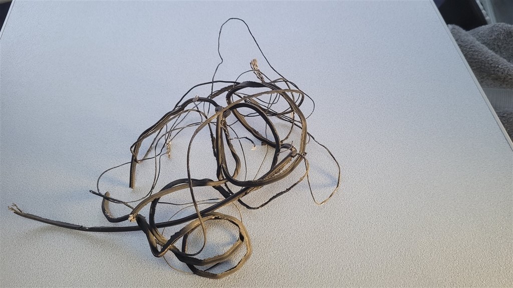 Mais nous n’en profiterons qu’un court instant. En reprenant la route, Pascal sent que quelque chose ne va pas. Il s’arrête, on ouvre le capot et horreur, des morceaux de la courroie se sont enroulés autour du ventilateur. On ne sait pas quoi faire. On ne capte pas, personne ne s’arrête. Pascal baisse les bras dix secondes. Il essaie de défaire les lanières sans succès. Un gentil canadien s’arrête et vient à notre rescousse, surtout à la rescousse de notre moral. On s’interroge de couper la bande pour essayer de débobiner le tout. Pascale se faufile par terre sous le moteur où des lanières pendent et des fils de ferraille et essaie de démêler. A deux, en se passant les morceaux, on arrive à tout enlever, Pascal se brûlant les mains et l’avant-bras. Le canadien nous suggère d’essayer de rouler avec ce qui reste de la courroie, jusqu’à la station essence du village du parc. On n’est pas fiers et ce sont les quinze kilomètres les plus longs que nous ayons faits. Et ça passe.