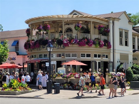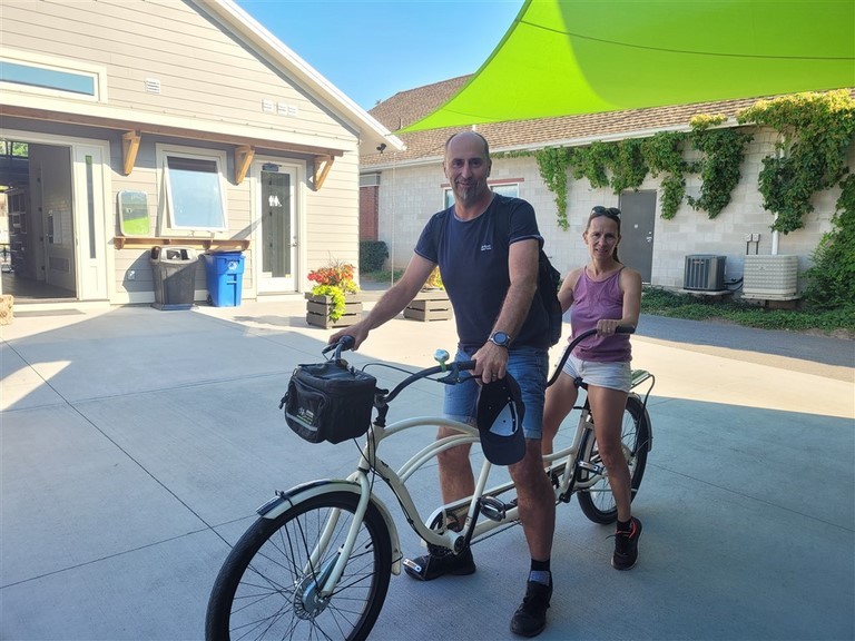 Nous passons la journée suivante à Niagara on the Lake, une charmante ville victorienne. Comme il n’y avait aucun transport pour y aller si ce n’est prendre un tour à touristes ou un taxi, notre gentille hôte a demandé autour d’elle et une de ses voisines nous y emmène pour quelques dollars et nous fait le guide touristique. Cette fois-ci ce ne sont pas des vélos électriques que nous louons mais un tandem. On se lance. Déjà que nous étions liés l’un à l’autre 24h/24, là c’est le même coup de pédale que nous devons donner, l’un ne peut pas avancer sans l’autre. Il faut se lier... quatorze mois à tenir dirait Jacky. On réussit même à ne pas s’engueuler pour faire ce tour à vélo du vignoble de l’Ontario. On n’y goûtera pas sachant que le premier prix de la cave pour une bouteille est de 35$ et la moyenne entre 50 et 75$. Nous qui voulions en ramener une, nous allons être sages.