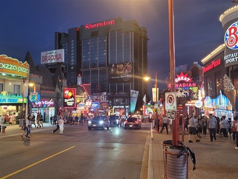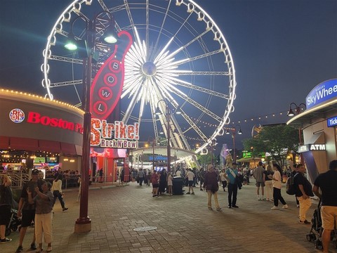 Là encore, les autorités ont décidé de reproduire un feu d’artifice sur les chutes pour notre arrivée (euh enfin c’est chaque soir). Le centre-ville n’est pas pour nous, entre animations, restaurants, manèges, grande roue, foule, bruit : un véritable parc d’attraction dans la ville.