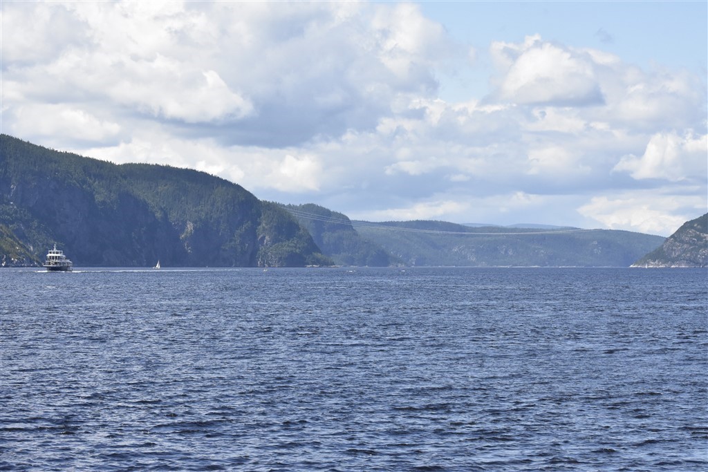 Nous nous sommes interrogés pour prendre un zodiac pour aller voir de plus près les baleines, les rorquals et surtout les bélugas mais les animaux en voie de disparition comme les bélugas ne peuvent pas être approchés à plus de 400m et les rorquals et baleines à 200m. Il apparait que ces animaux qui viennent dans le fjord du Saguenay pour se nourrir, sont de plus en plus dérangés par les bateaux de touristes qui ne respectent pas toujours la réglementation et ils se mettent à fuir cet endroit riche de nourriture. Le béluga est le seul cétacé résidant à l’année dans les eaux du Saint-Laurent, dans lesquelles il se nourrit, se reproduit et met bas. C’est une sorte de dauphin tout blanc, appelé aussi canari des mers du fait des cris qu’il émet. Cependant chassé jusqu’en 1950, il est en voie de disparition. En 1885, il y avait 7800 à 10000 individus et au début des années 2000, il n’en restait plus que 1100, en ce moment il y a environ 900.