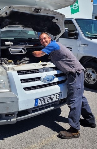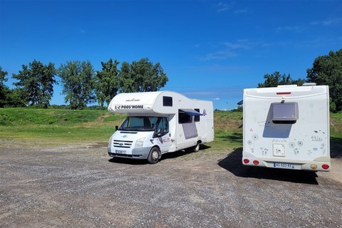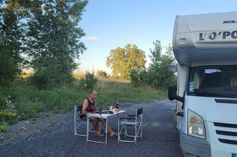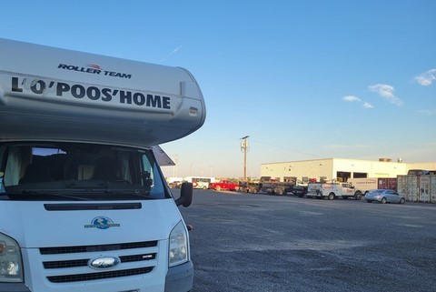 Quand Pascal doit se résoudre à laisser le volant, une grosse fumée se dégage du pot d’échappement et Dédé perd de la puissance. Nous sortons vite de l’autoroute et repérons un garage Ford à 6km. Il est 16h50 quand nous arrivons. Il ferme à 17h. C’est vendredi. Mais les mécanos nous font le diagnostic vite fait, en branchant la valise : la vanne EGR que nous avons changée il y a 3 ans est HS. Il nous faut attendre tout le week-end sur le parking plutôt sympa, en lisière de forêt. On verra même un coyote passer non loin de nous.