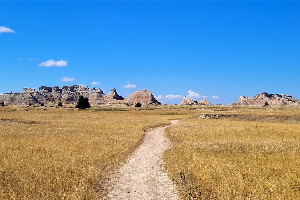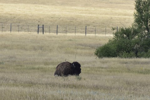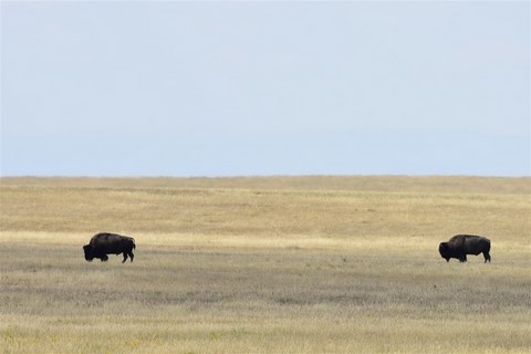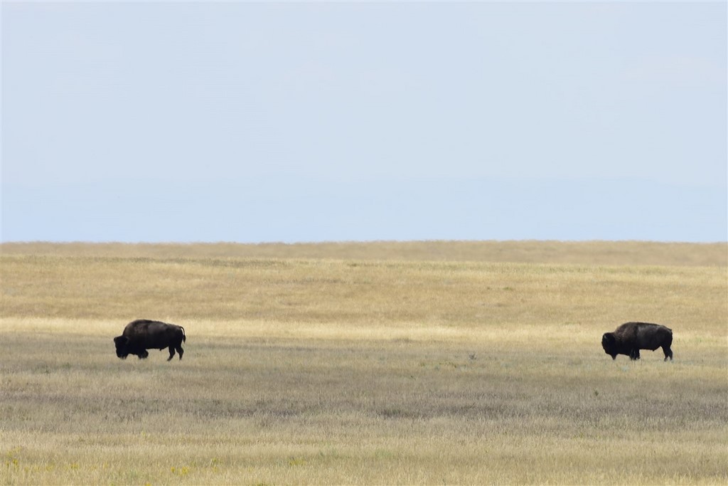 Le lendemain matin, nous nous faisons une petite balade dans les Badlands, puis nous apercevons nos premiers bisons, au loin.