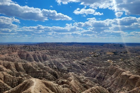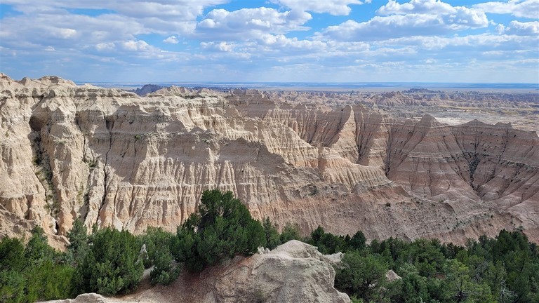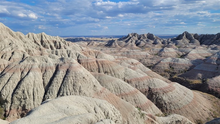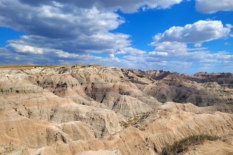 Nous finissons la journée dans le parc national des Badlands tout proche. C’est notre premier parc national américain. Nous achetons le pass annuel pour 80$. Il permet à tous les occupants d’un même véhicule, d’accéder aux Parcs Nationaux pendant un an. On va vite l’amortir, sachant qu’une entrée est à 30$. Les formations rocheuses prennent différentes couleurs et l’appareil photo se met en marche.