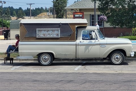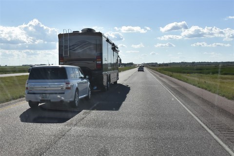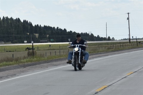 Nous quittons le Wisconsin et mettons le cap à l’ouest. La route en ligne droite, plate, monotone pendant des centaines de kilomètres. Il n’y a rien à voir, à part des champs de maïs et des champs… Nous traversons le Minnesota. Puis nous voici dans l’état du Dakota du Sud. Pascal s’amuse à prendre des photos pour s’occuper. Là, il n’y a plus rien, du vide.