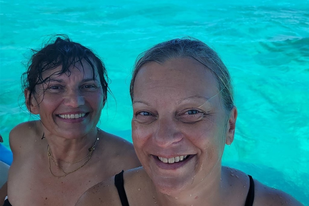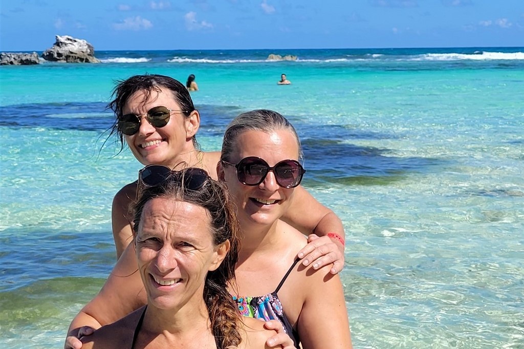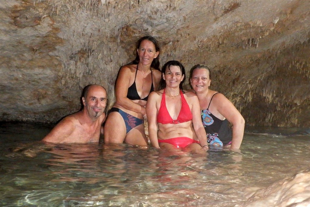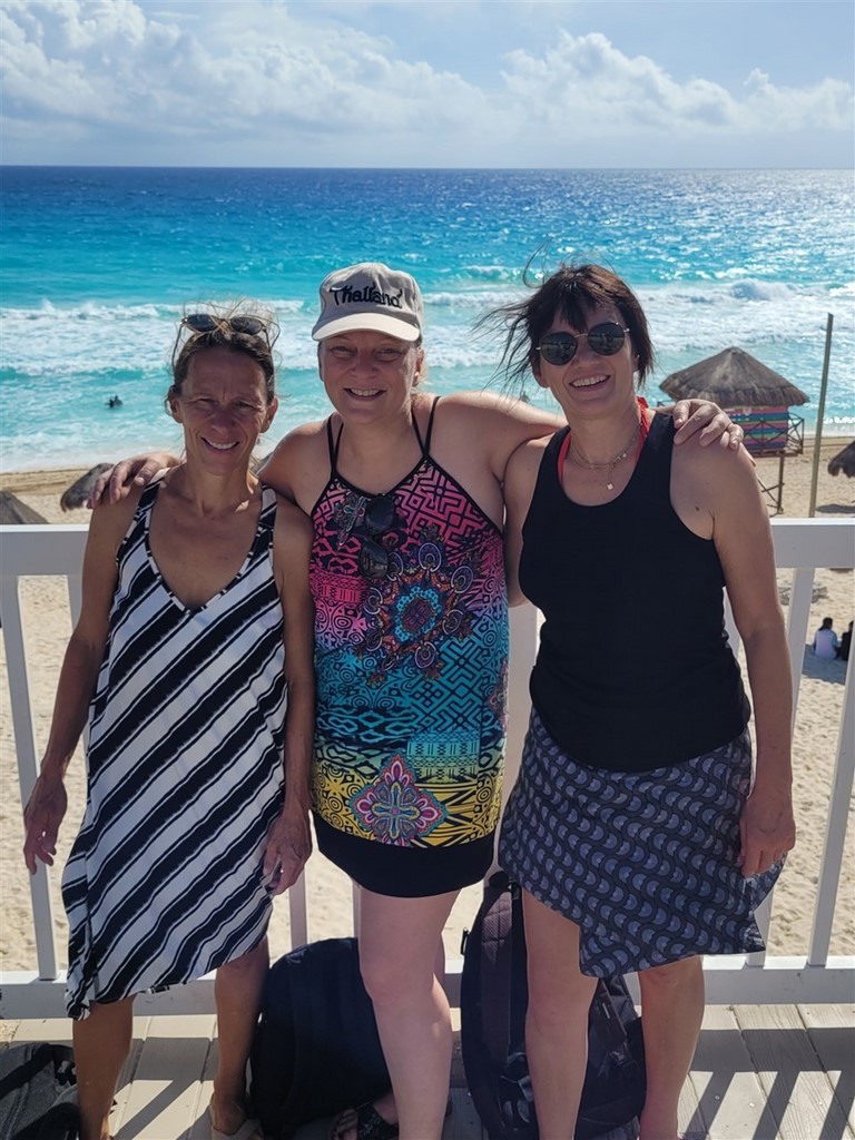 Le 18 décembre, Christine et Delphine, nos copines du village arrivent. Elles ne savent pas à quoi s’attendre mais ont rêvé de leurs vacances au Mexique et en camping-car. Elles découvrent leurs premiers dos d’âne, les topes en espagnol, surtout celui qu’on n’a pas vu et qui va renverser et casser le bidon de vingt litres d’eau qu’on vient tout juste de remplir. Le premier bivouac est dans la rue pour qu’Antonio, notre super mécanicien, puisse remettre Dédé en état de marche. Pendant ce temps, pour les filles, c’est collectivo puis bus pour aller à Playa El Delfines se baigner et admirer le bleu turquoise de la mer des Caraïbes. Cela permet aussi d’avoir les premières photos pour qu'elles puissent faire bisquer leurs amis et collègues.