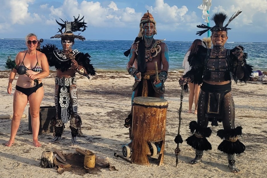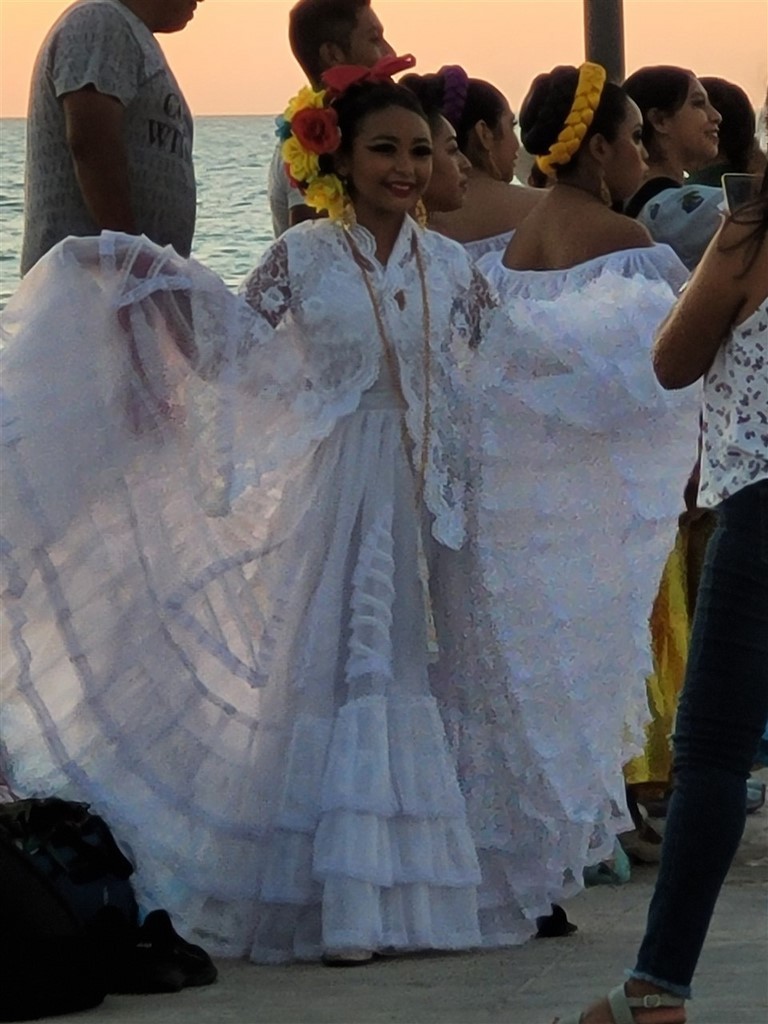 C’est bon, Antonio a remis Dédé en état. Puissance retrouvée, plus cette abominable fumée noire très opaque. Direction Puerto Morales à trente minutes de Cancun. Sur la plage, des mayas font une petite démonstration de danse.