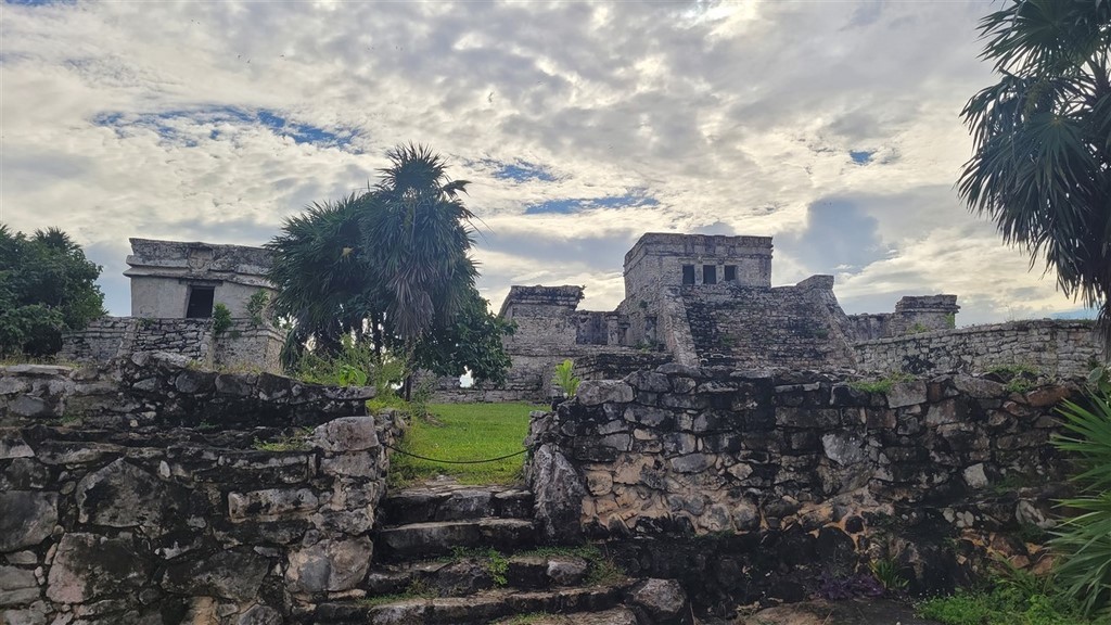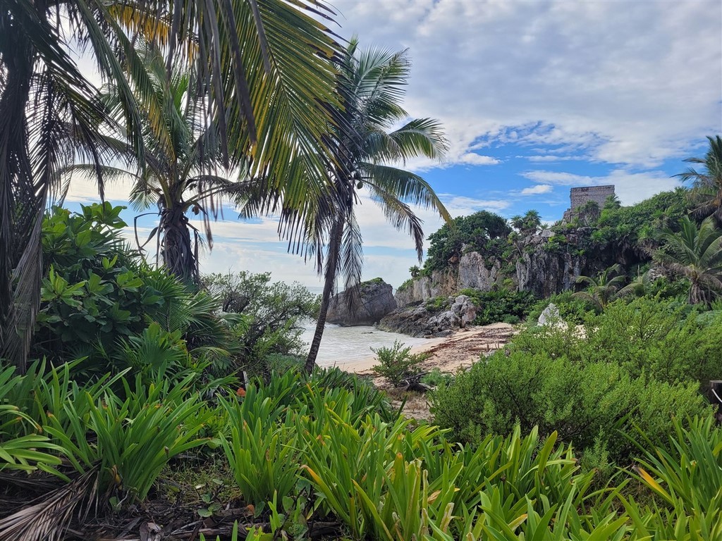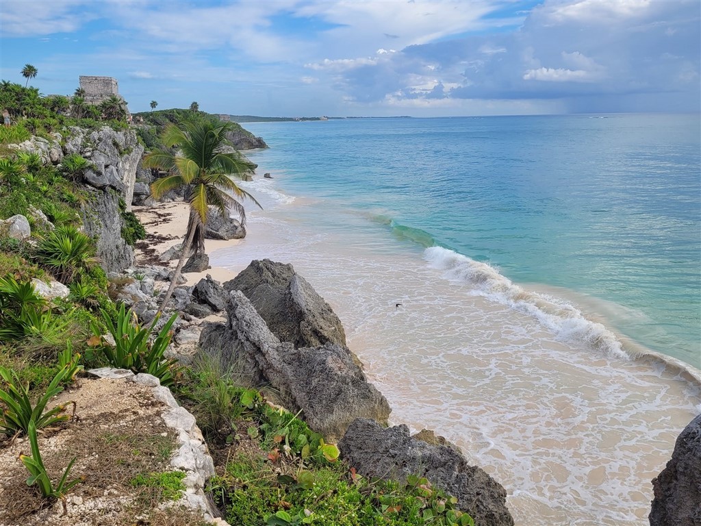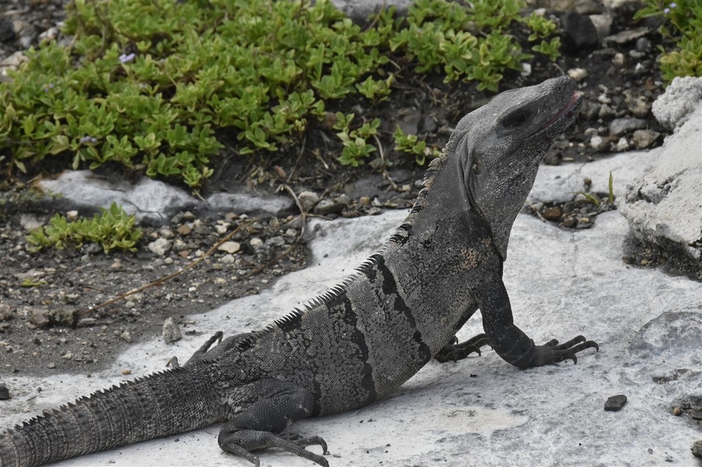 Le circuit prévu passe par la visite du site Maya de Tulum. On y est à 9h00 pour éviter le monde. Le site est dans une nature verdoyante et donne sur la mer, légèrement surélevé. Des iguanes paressent sur les pierres ou se laissent prendre en photo par les touristes. Pascal le préfère à Palenque.