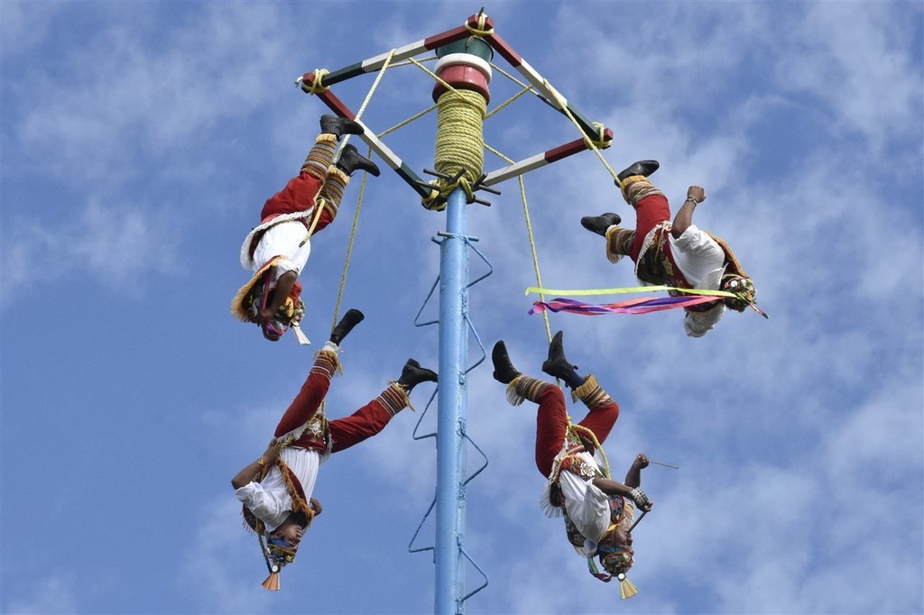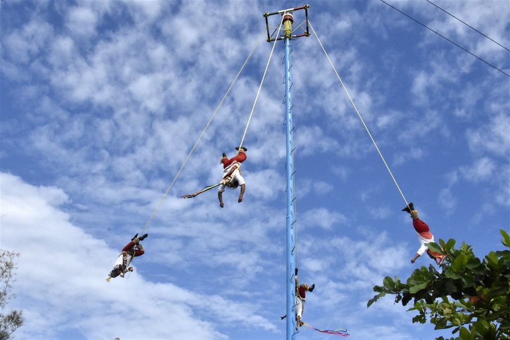 A Tulum, nous avons la chance de voir les voladores, les danseurs acrobates descendant d’un mat, attachés par un pied. Nous les avions vus à Cholula et nos copines peuvent en profiter à leur tour. Plutôt cool.