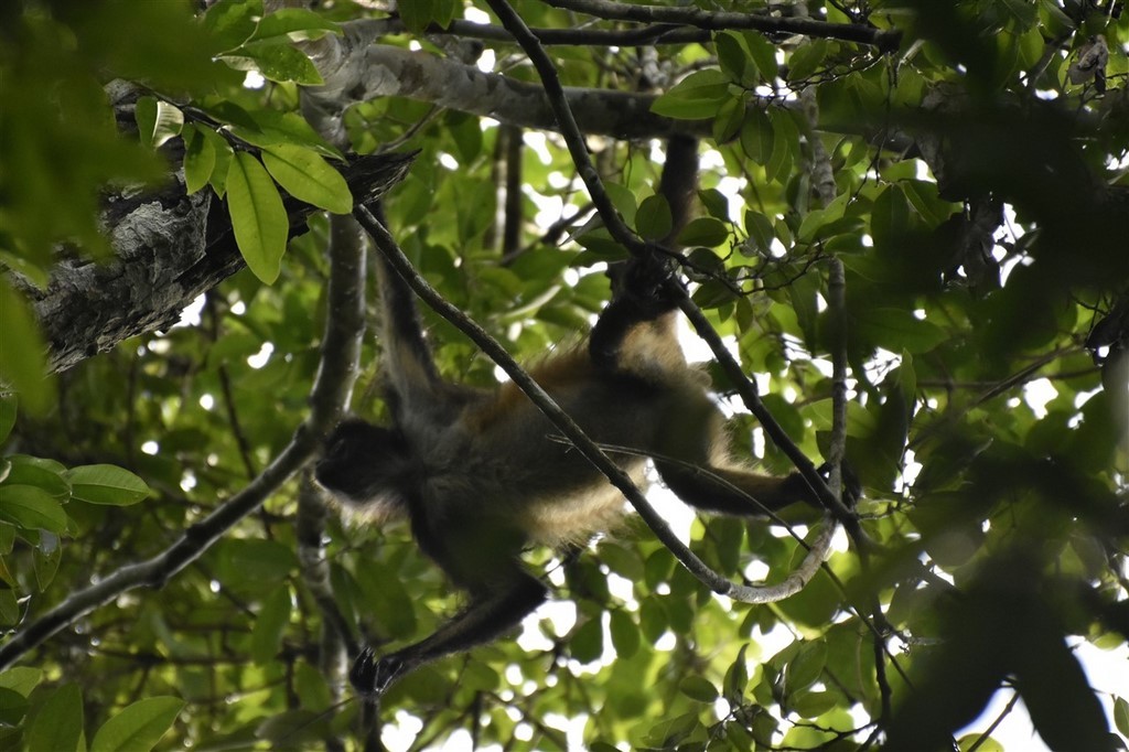 Une rando dans la jungle à Punta Laguna permet d’entendre les singes araignées et les singes hurleurs. Seuls les singes araignées sont vraiment visibles, les singes hurleurs tout en haut des arbres dorment quand nous parvenons à les voir. Le bivouac dans la jungle au bord du lac, après une descente tendue pour Dédé, laissera un souvenir impérissable à Christine. Faut dire que la vue est grandiose.