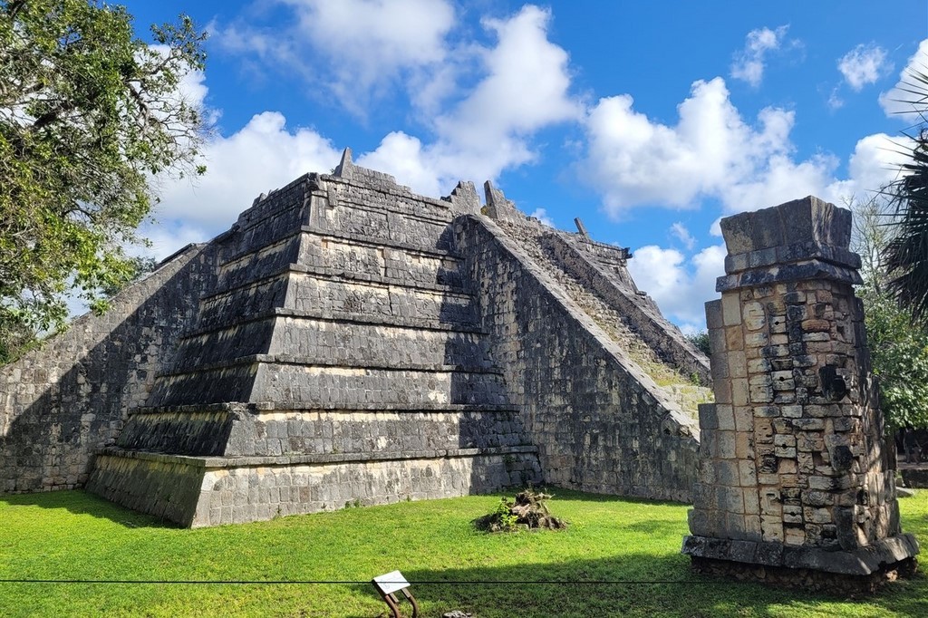 Chichén Itza, une des sept nouvelles merveilles du monde moderne, est l’un des sites les mieux conservés que nous ayons vus. Le Castillo ou la pyramide de Kukukan du nom du dieu serpent Quetzalcóatl pour les Mayas, est impressionnant. On apprécie sur les différents temples la beauté des fresques. Les filles prennent plaisir à acheter et à marchander sur les multiples stands ambulants.