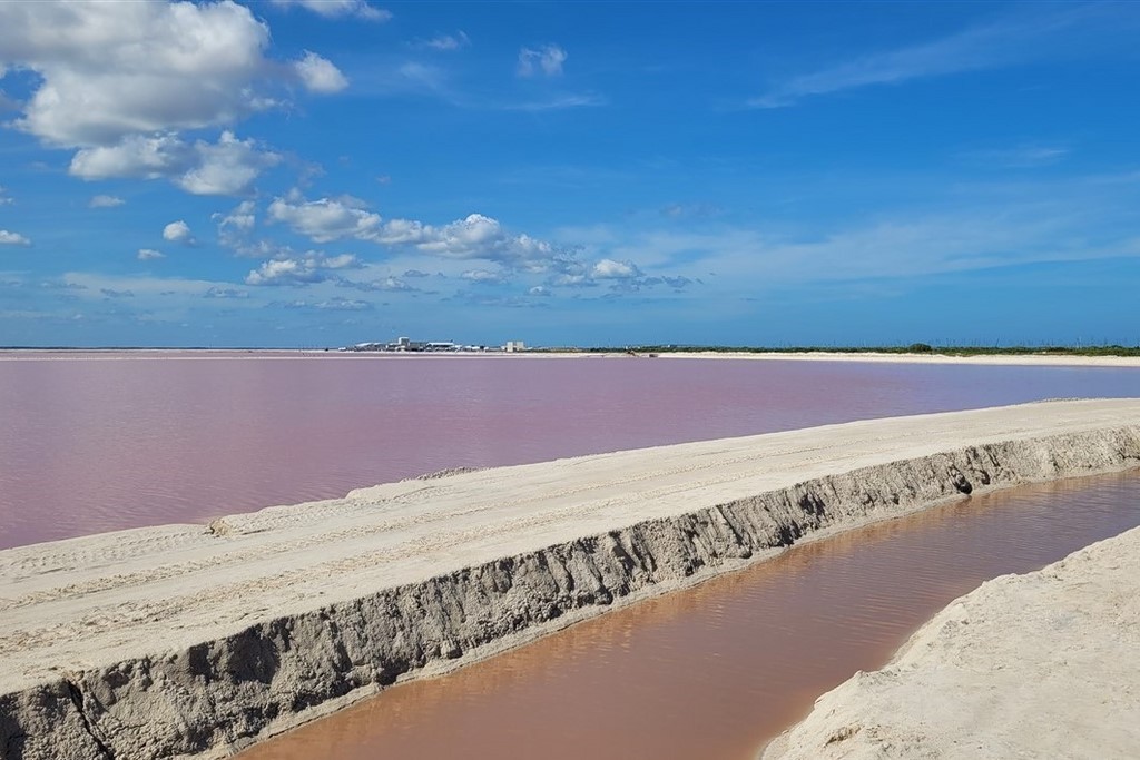Nous avons de la chance à Las Coloradas, le soleil est là et l’étendue rose de la lagune est magnifique.
