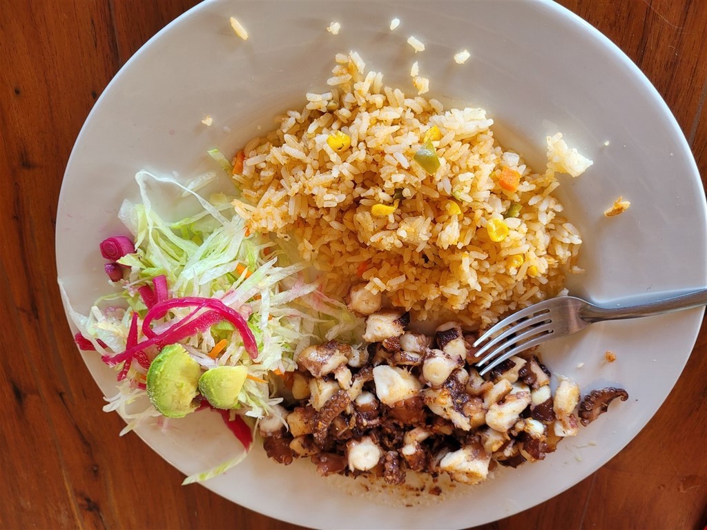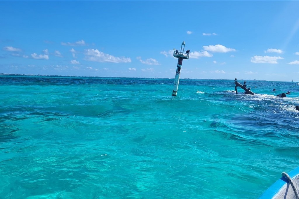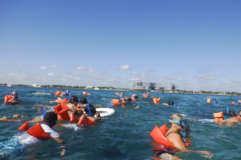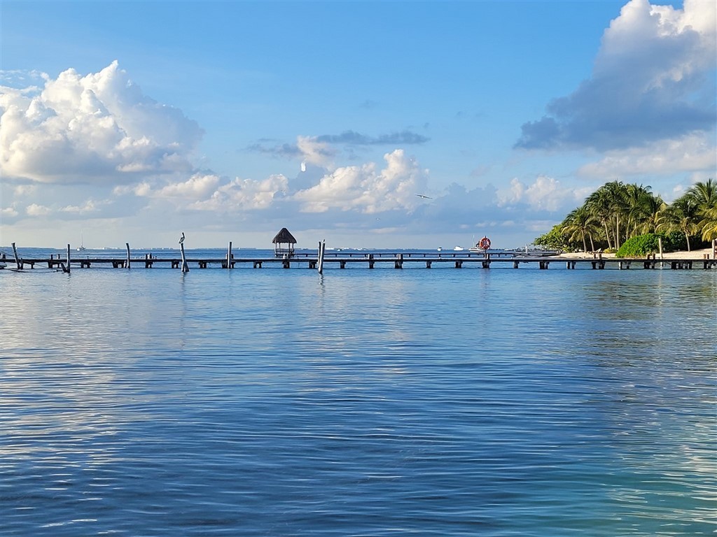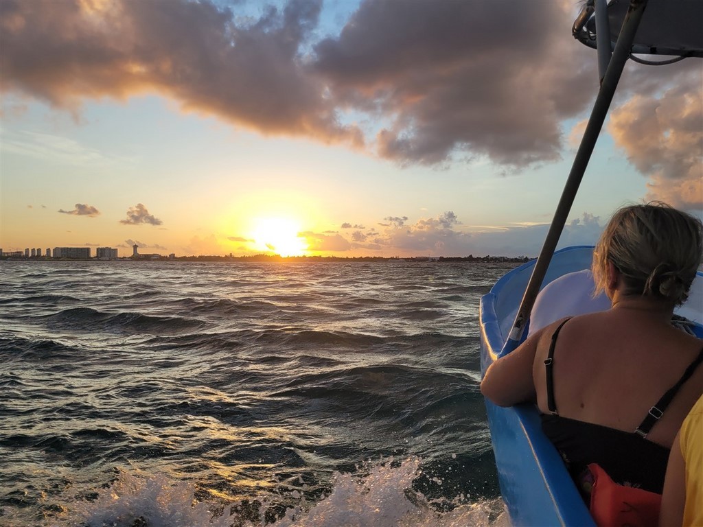 Notre boucle avec les filles s’achève. Nous sommes de retour à Cancun. Nous nous octroyons une excursion dans la très touristique ile Isla Mujeres. Nous sommes treize sur la petite lancha, et sommes les quatre seuls français parmi tous ces mexicains. Le bateau nous emmène à deux endroits pour du snorkeling. Le premier arrêt, chronomètre à la main, nous oblige à suivre le guide dans l’eau avec gilet de sauvetage et au milieu de tous les groupes. Certains guides attirent même les poissons en les nourrissant. Quelle horreur ! Le deuxième stop est un peu mieux pour regarder les poissons près d’une épave. A Isla Mujeres, la plage nord pourrait être sublime au petit matin avant le débarquement des bateaux de touristes comme nous. Par contre, nous avons droit à un déjeuner dans une cantine très typique et locale, et là, on adore.