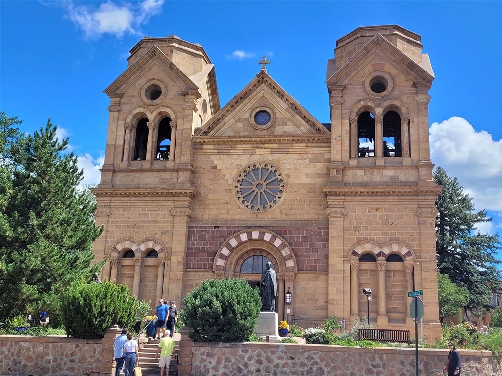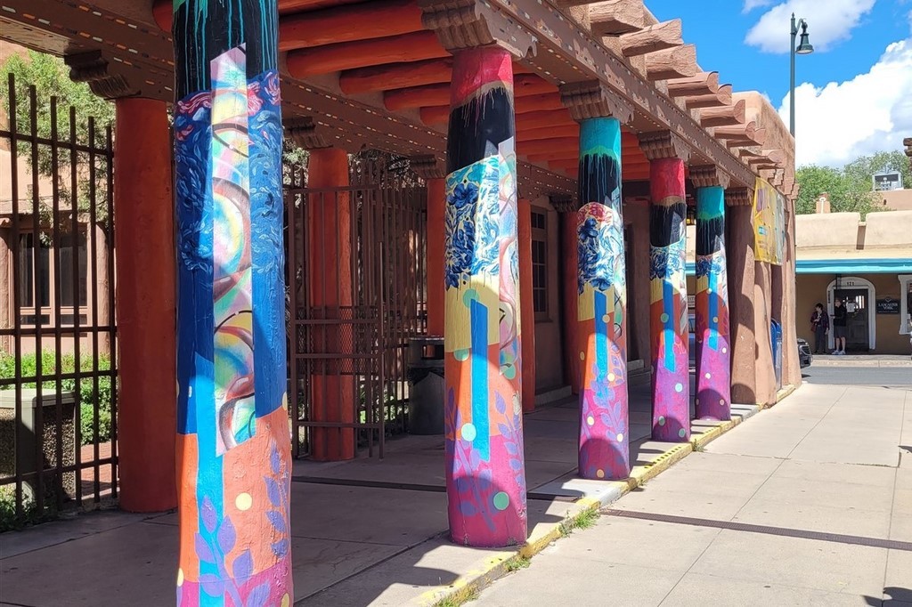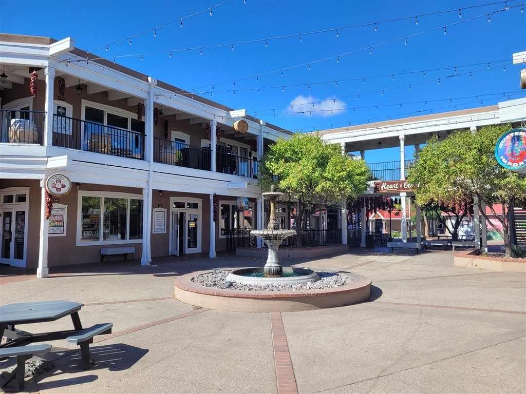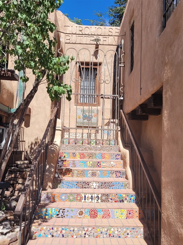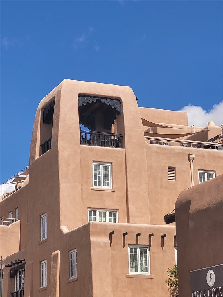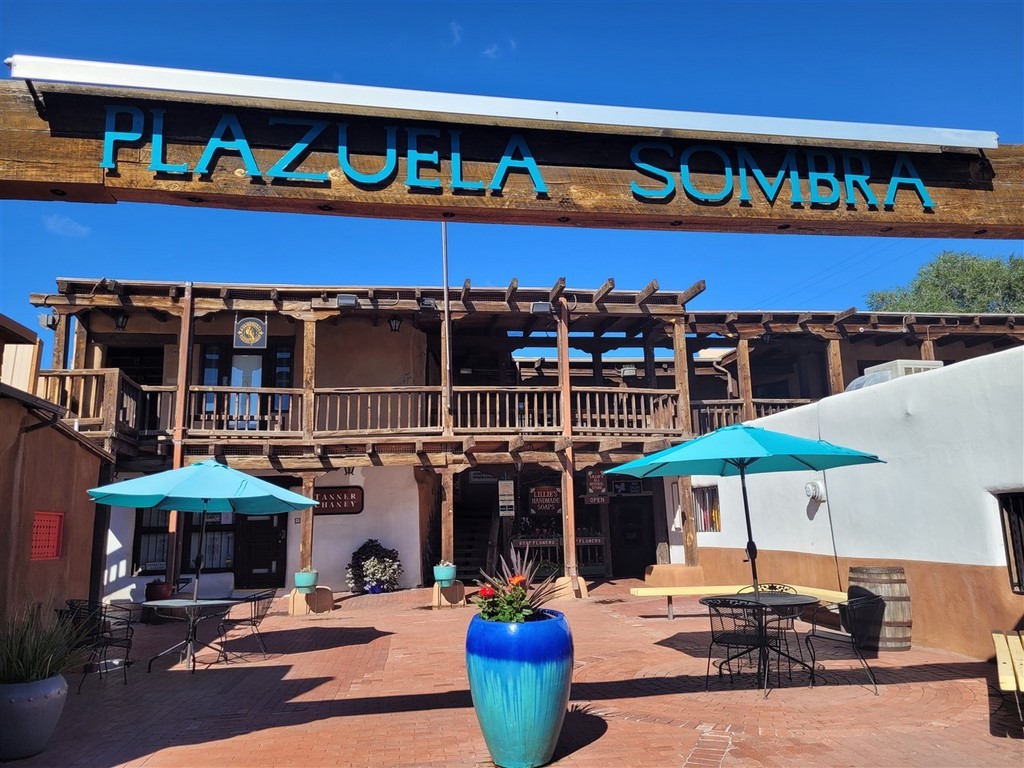 Albuberque est un nom de ville du Nouveau-Mexique difficile à prononcer pour nous. Ne serait-on pas déjà arrivés au Mexique ? Le centre-ville est tout petit et on adore les maisons en briques d’adobe. L'adobe est de l’argile mélangée à de l’eau et de paille hachée ou d'un autre liant. Les patios fleuris avec des tables invitent à une pause.