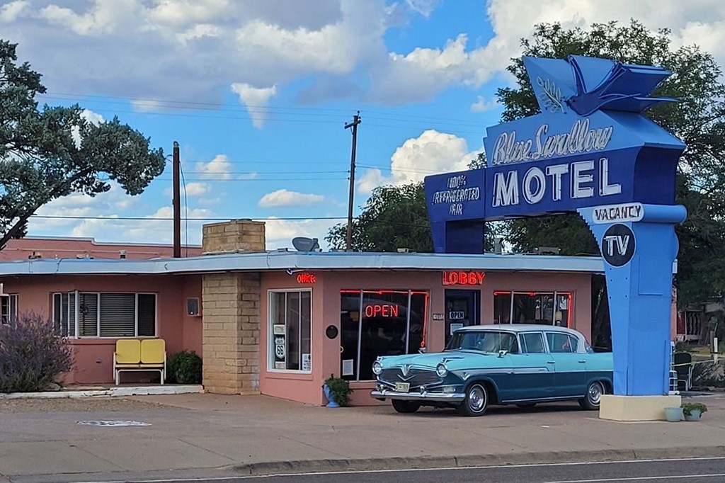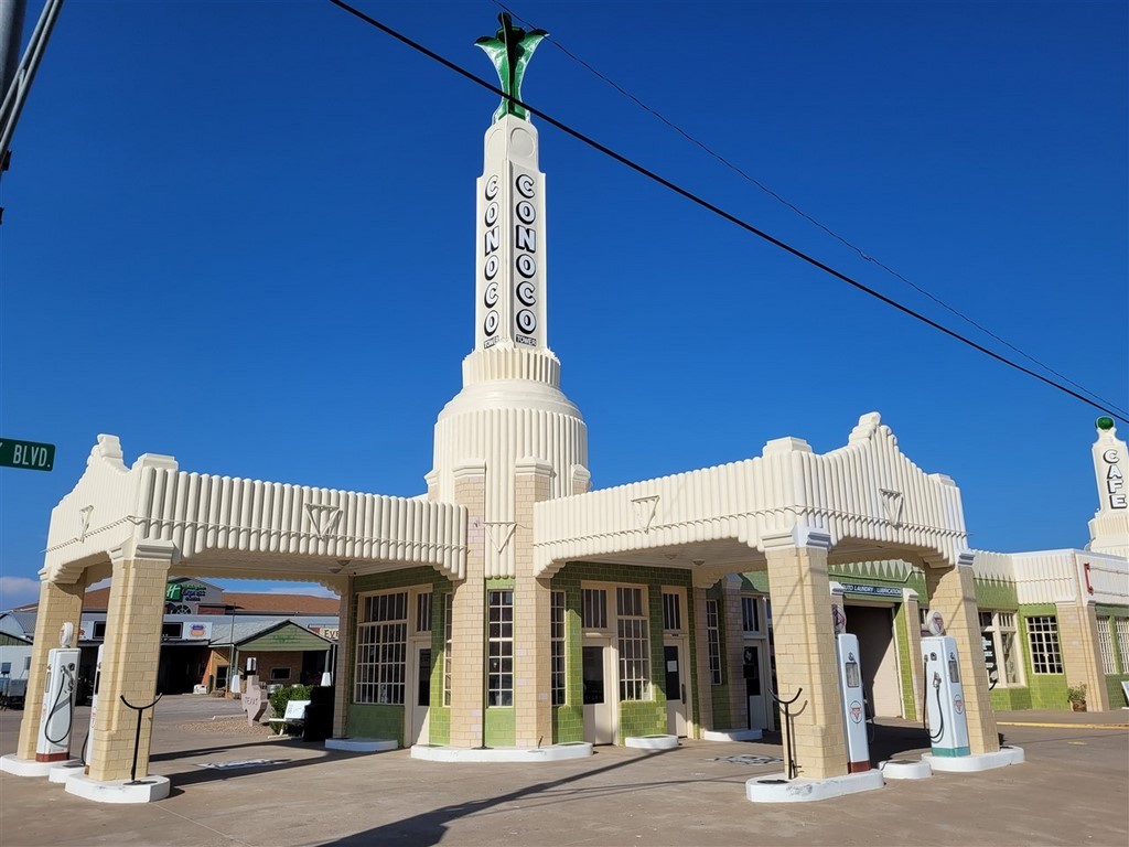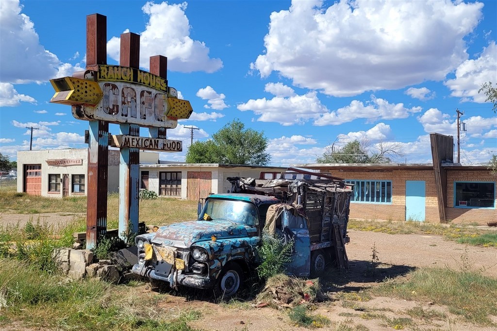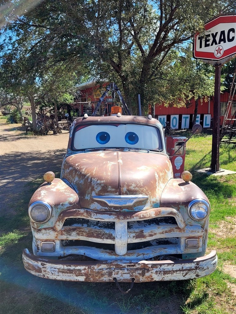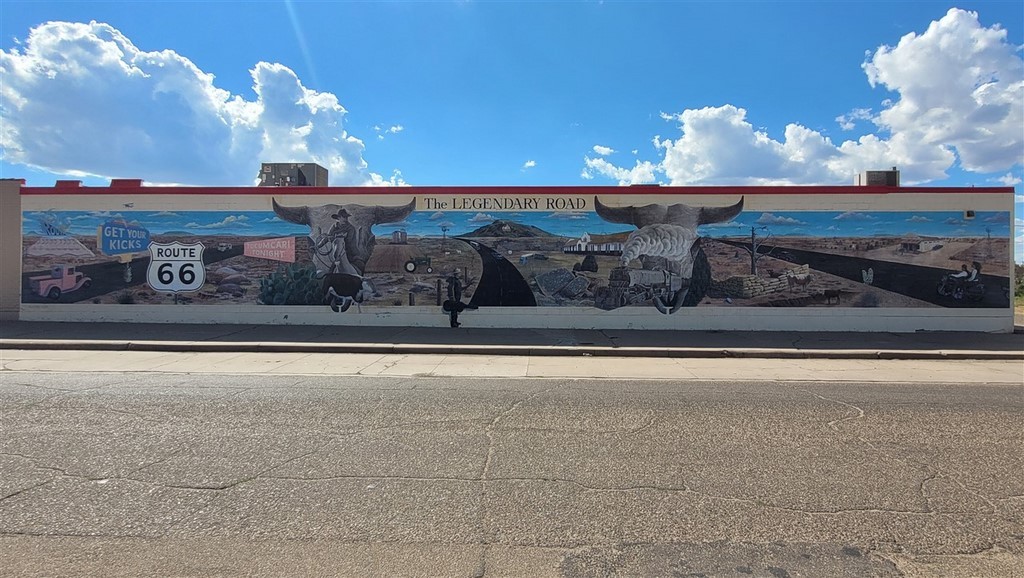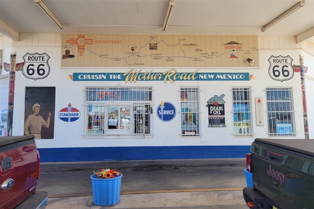 Le parcours continue avec un autre coup de cœur : la mythique route 66. C’est la « Mother Road » comme elle est communément appelée après l’édition du livre de Steinbeck « Les raisins de la colère ». Beaucoup nous avait demandé si c’était au programme, et on ne pensait pas s’y intéresser plus que ça. Cette route allait de Chicago à Los Angeles (initialement Santa Monica), maintenant il n’en reste que des petits morceaux. En arrivant à Albuquerque, on commence à l’emprunter et on tombe sous son charme. On modifie un peu notre itinéraire pour la suivre. Que ce soit la ville de Tucumcari où nous nous arrêtons tous les dix mètres, McLean, Shamrock, Erick, Hydro, on aime toutes ces stations essences vétustes ou refaites, ces motels, ces vieilles voitures, ces villes fantômes, ces boutiques d’un autre temps, ces peintures sur murs ...