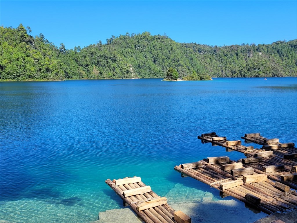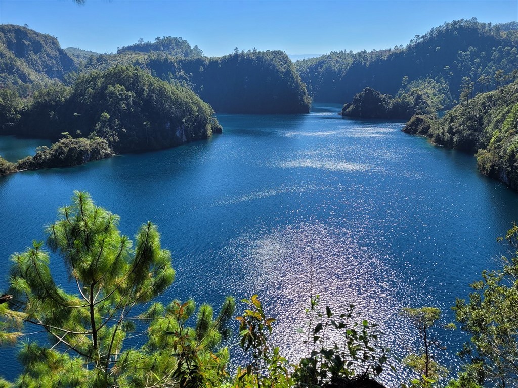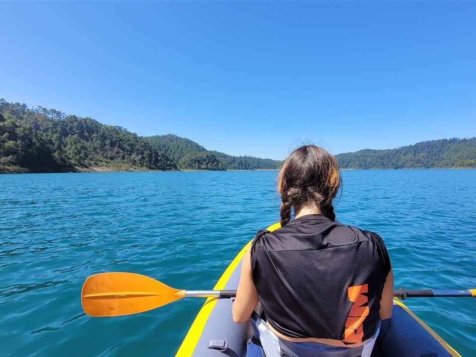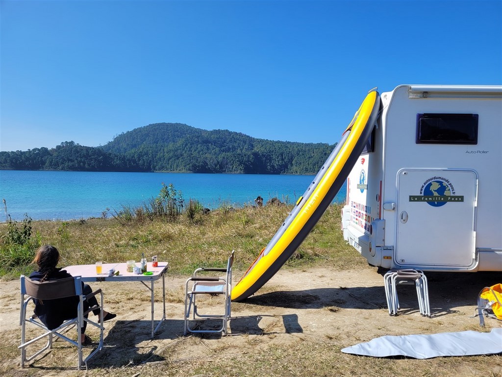 Nous nous arrêtons aux Lagunes de Montebello et plus précisément au lac de Tziscao. Cela nous permet de sortir le kayak pour une petite balade. Plus tard, nous irons admirer le lac de Cinco Lagos et le lac Pojoj.