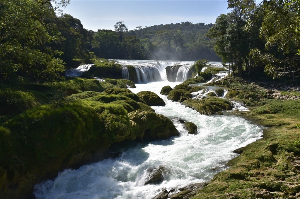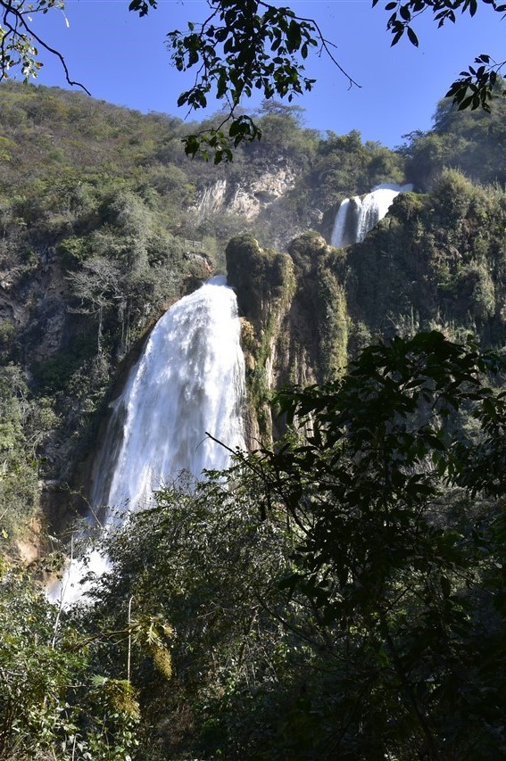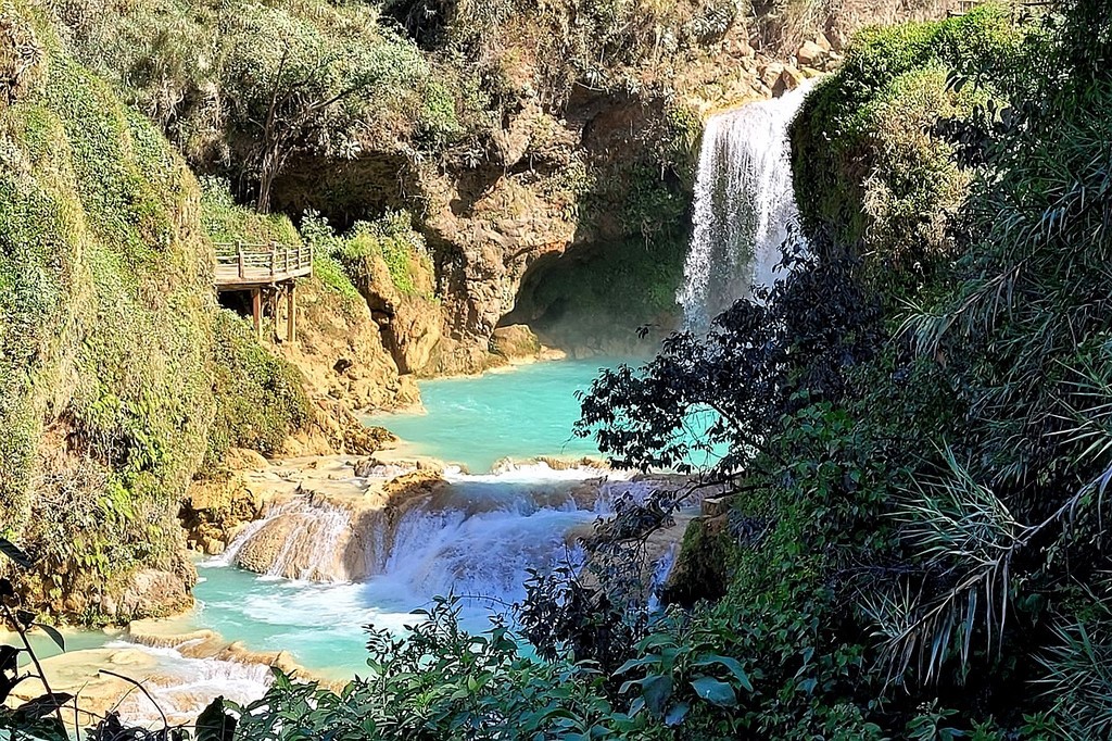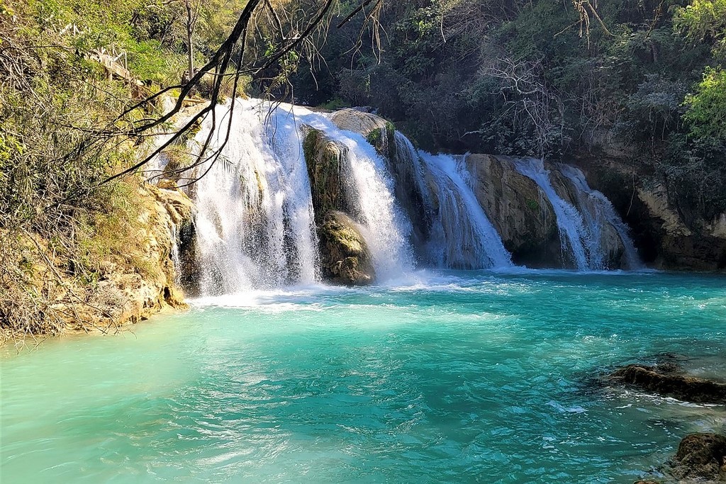 Pour terminer notre découverte de cette partie du Chiapas, nous nous rendons sur le site des cascades El Chiflon. On y trouve une série de cascades et vasques aux eaux turquoise. La plus haute chute, nommée Velo de la Novia, fait 120m de haut. Pour éviter la flot des touristes et vu que nous avons dormi sur le parking du site, nous entamons la balade dès l’ouverture. Et nous avons bien fait car lors de notre descente, il y a une foule qui s’amasse sur les lieux.