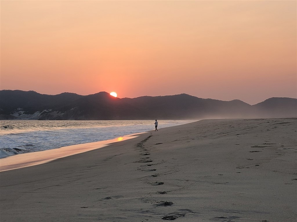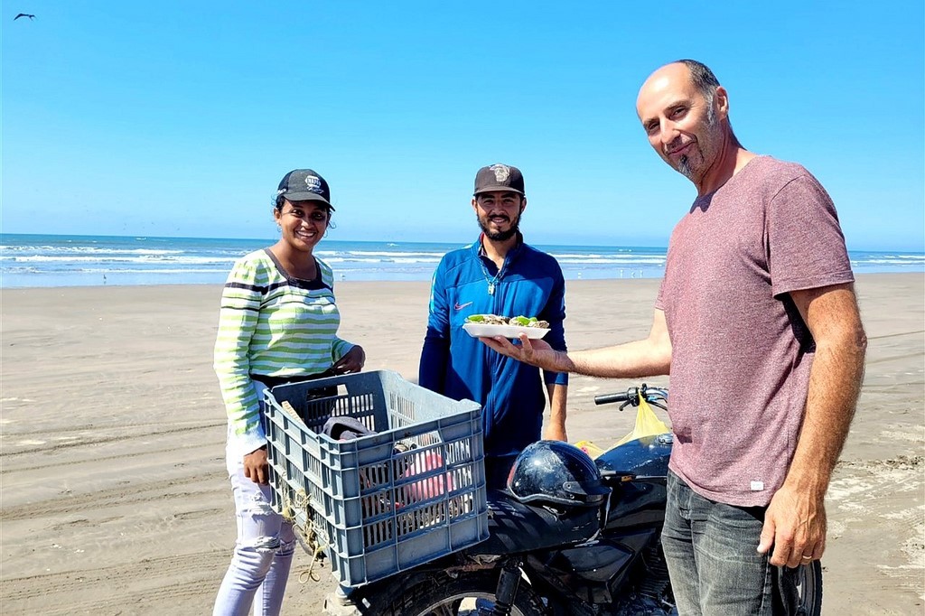 Nous faisons un dernier tour à la plage, à la Playa Novillero. Nous passons quelques jours sur cette plage. On est bien, les livreurs d’huitres passent directement nous voir. Le pêcheur ne veut même pas qu’on le paie et nous offre trois beaux poissons.