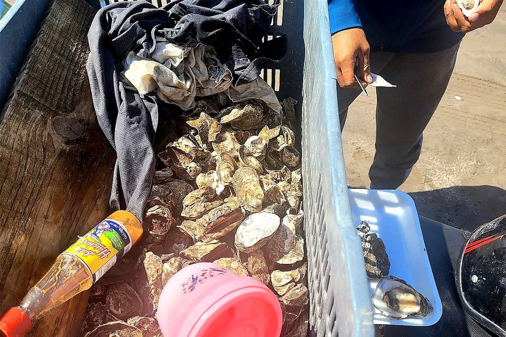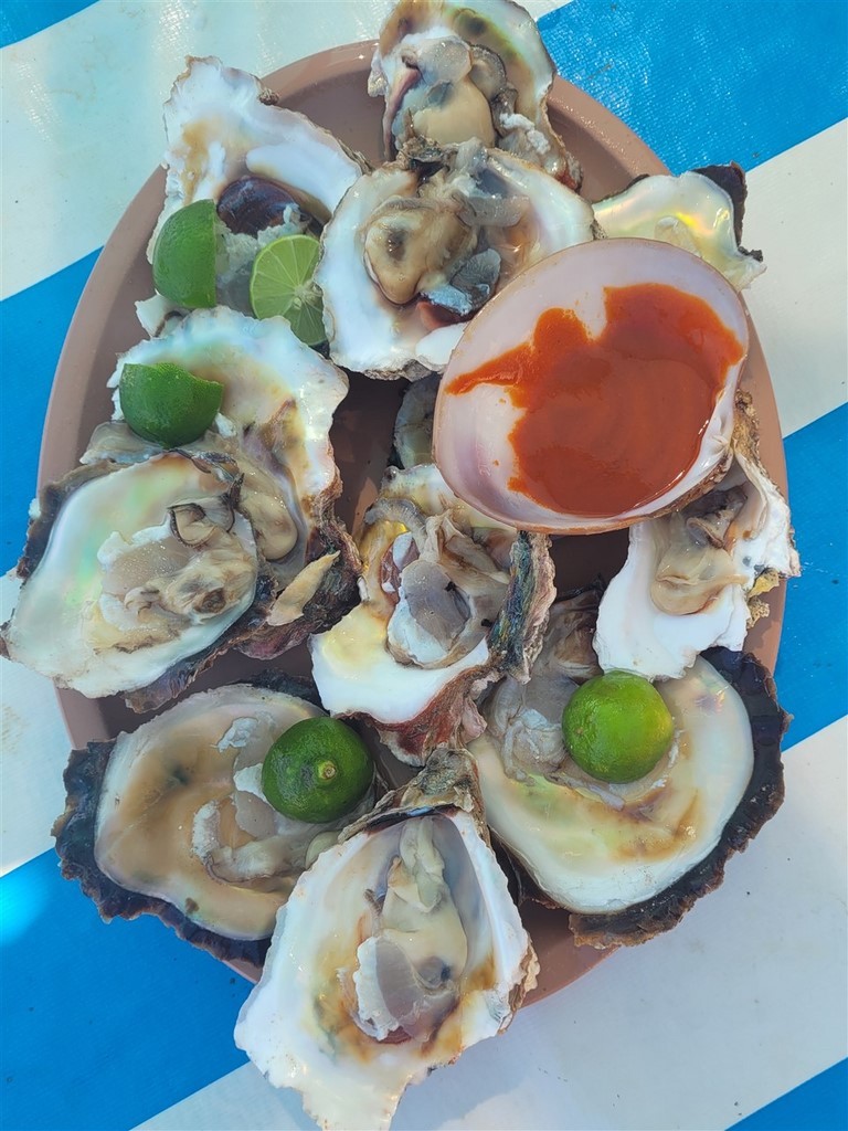 On regarde la population s’agglutiner à la Playa Entraga posant tables et chaises jusque dans l’eau. Après avoir dégusté un plat d’huitres, on file, en snorkeling, pour les fonds sympas sur une plage déserte.