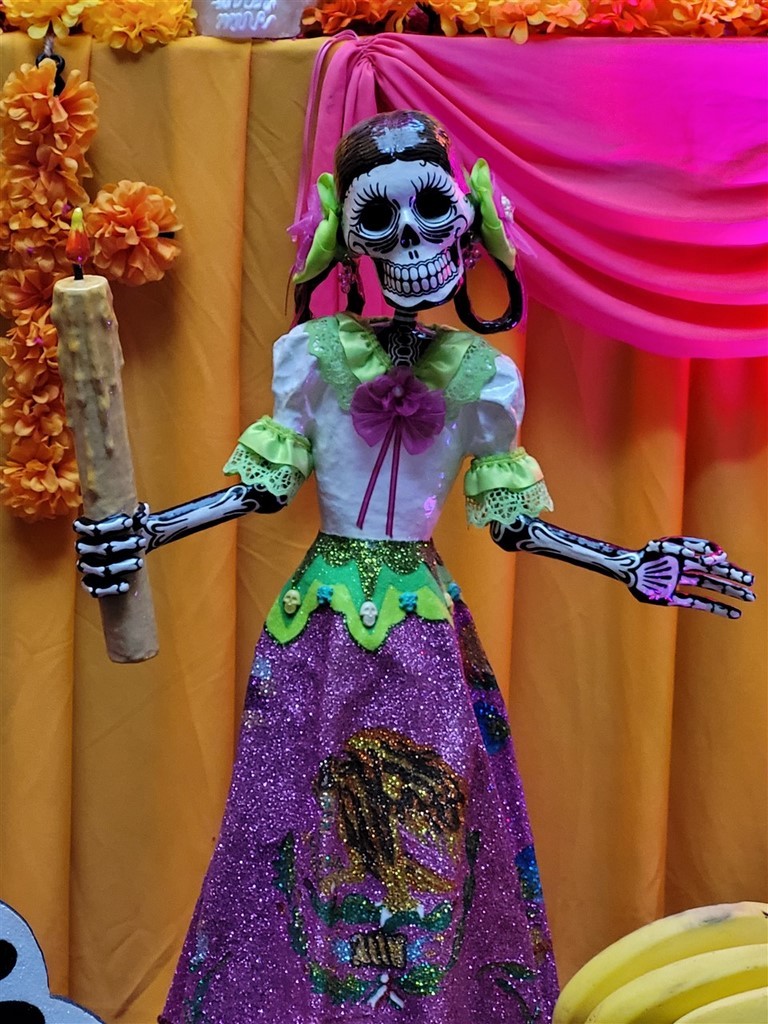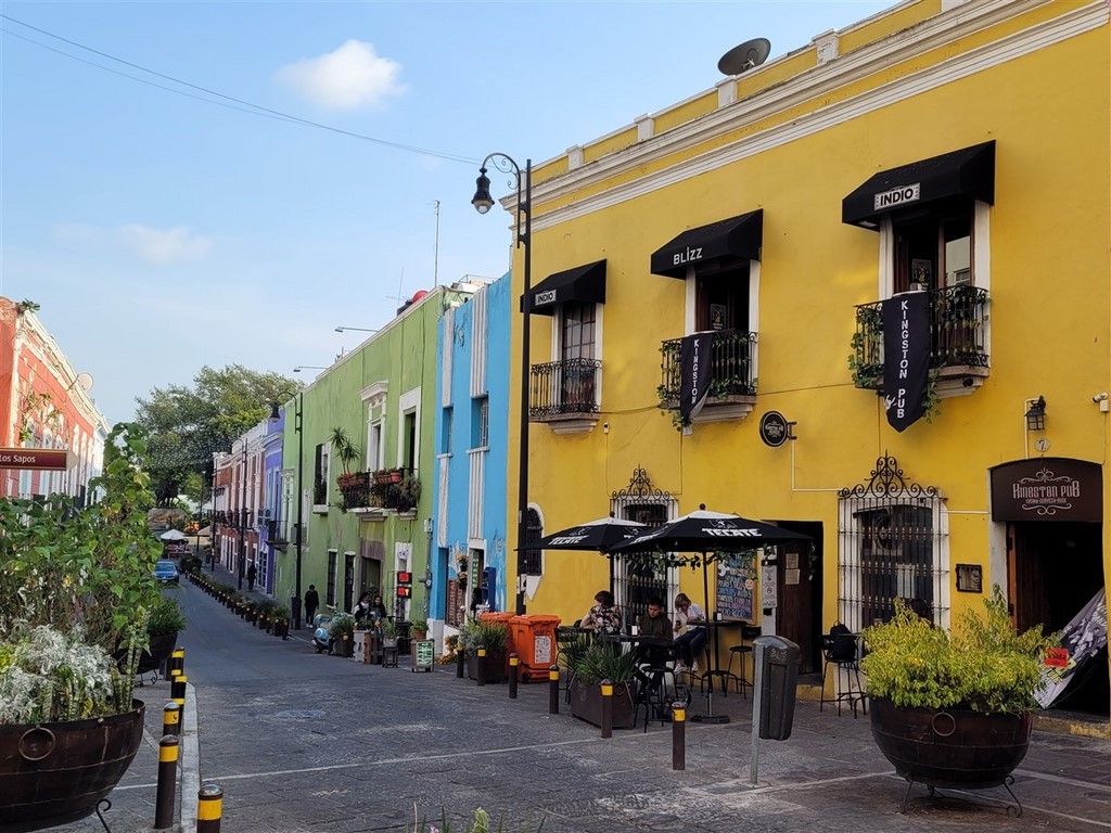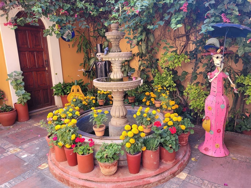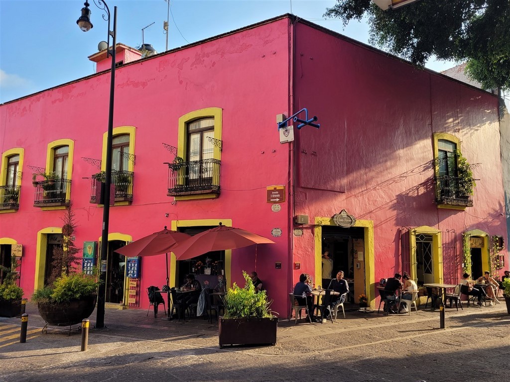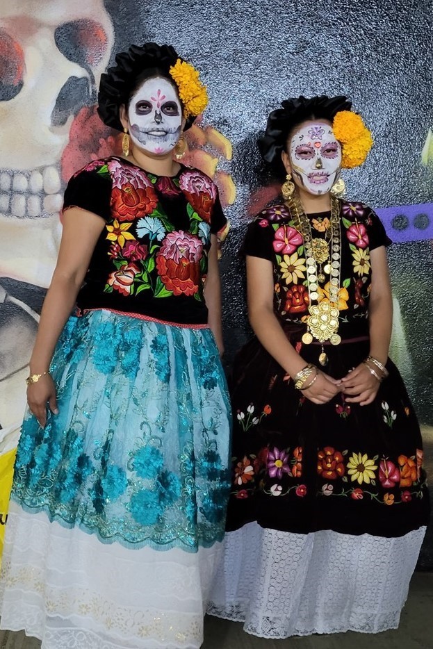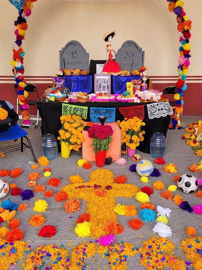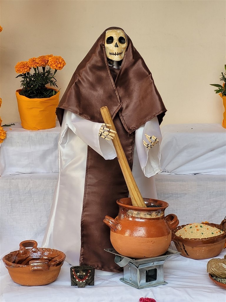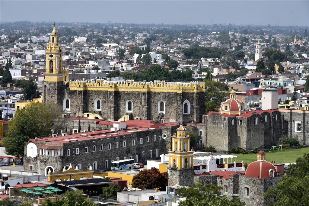 On continue notre descente vers le bas du Mexique avec Cholula et Puebla. La ville de Cholula est toute mignonne et on assiste à une démonstration de voladores. Ce sont quatre danseurs acrobates voltigeant attachés par un pied à une corde reliée en haut d’un poteau. Partout des autels ont été préparés pour le jour des morts et cela ajoute un attrait à notre visite. Les catrinas sont toutes différentes, les squelettes ont des positions différentes et c’est toujours fleuri. Il y a des photos des personnes décédées avec les objets en relation avec elles. Des fruits et le pain de la mort sont déposés.