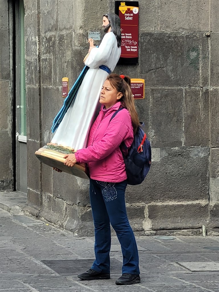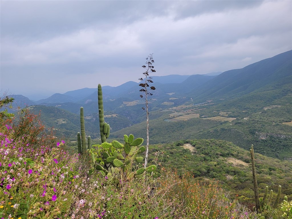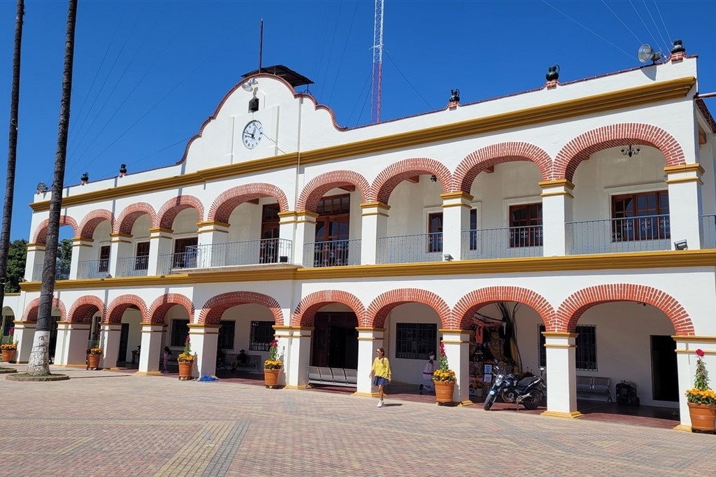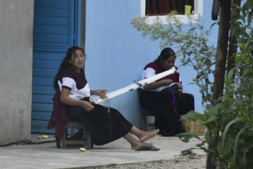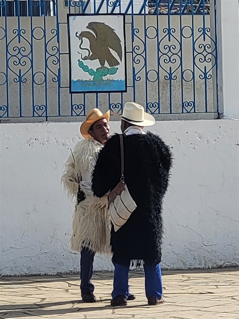 Petite anecdote sur la route de Oaxaca au moment de chercher un bivouac : Pascal demande à une famille sur le bord de la route si on peut trouver un emplacement dans un des villages voisins. Ils disent que oui, qu’ils voyagent aussi et cherchent un endroit pour dormir. Pascal ni une ni deux, les invite dans le camping-car pour les transporter jusqu’au village. Il fait presque noir. Il ne les connait pas du tout, pas terrible comme décision, il ne fait pas vraiment preuve de vigilance. Il s’agit de personnes vénézuéliennes, qui remontent pays après pays en espérant passer aux Etats-Unis. Les parents ont 22-23 ans et les enfants 5 et 8 ans. Ils n’ont pas d’argent. Cette imprudence ne tire pas à conséquence car la cour intérieure du bâtiment de la municipalité nous accueille pour la nuit. Nous sommes garés à côté de la voiture de la police municipale et nous avons pu dépanner pour quelques kilomètres une famille.