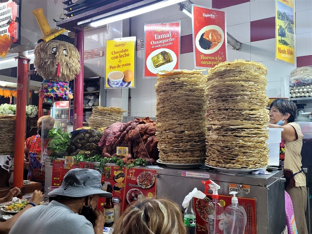Le 1er novembre c’est l’anniversaire de Pascal, ce sera donc un restaurant pour midi. Il est un peu plus classe pour une fois même si c’est de la cuisine très locale. Les plats sont les mêmes que ceux qu’on mange aux marchés ou dans la rue, mais tout de même, beaucoup plus raffinés. Mais surtout, nous avons droit à la dégustation de différents mezcals, et ça, c’est top.