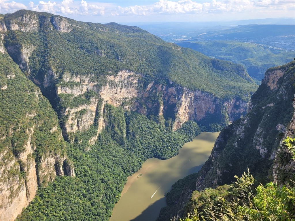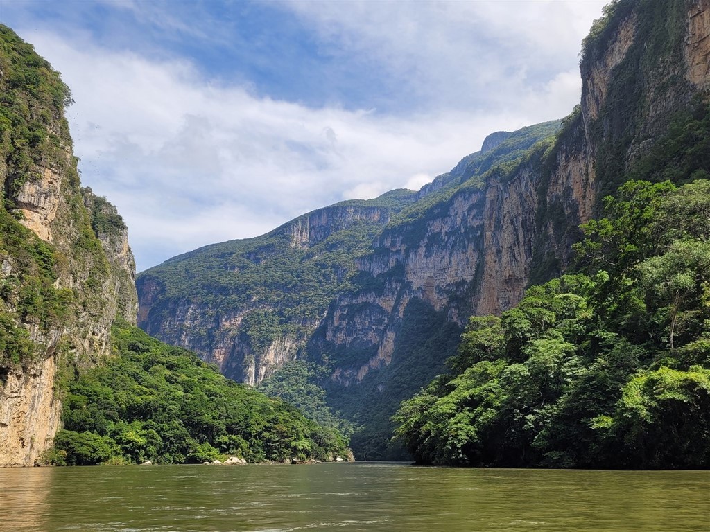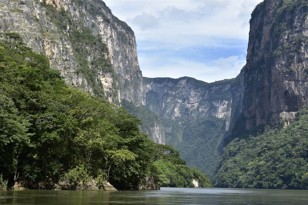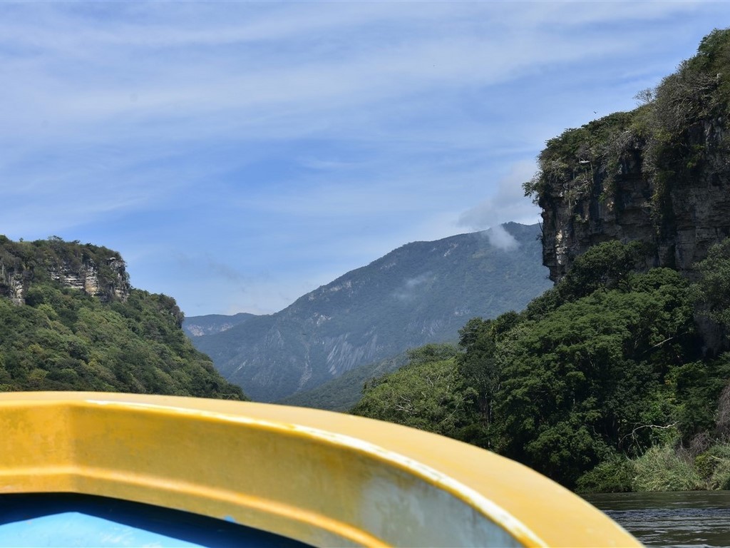 Nos copines du village Delphine et Christine vont arriver dans 15 jours et nous devons nous diriger sur l’autre côté, à Cancun. Le canyon de El Sumidero est impressionnant que ce soit du bas en bateau ou du haut du canyon. Des crocodiles se prélassent sur les berges.
