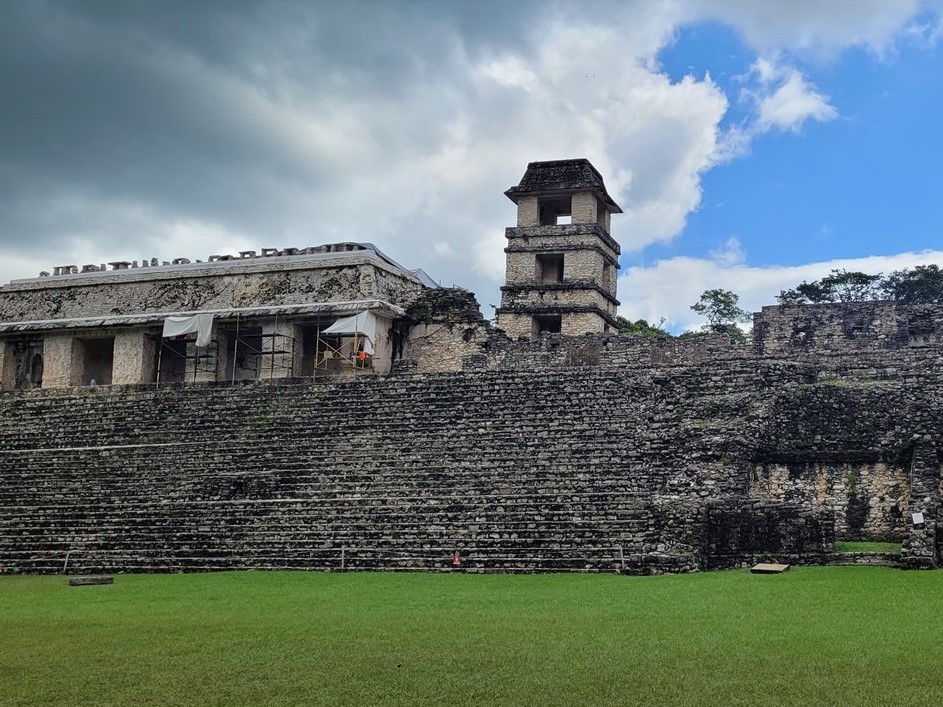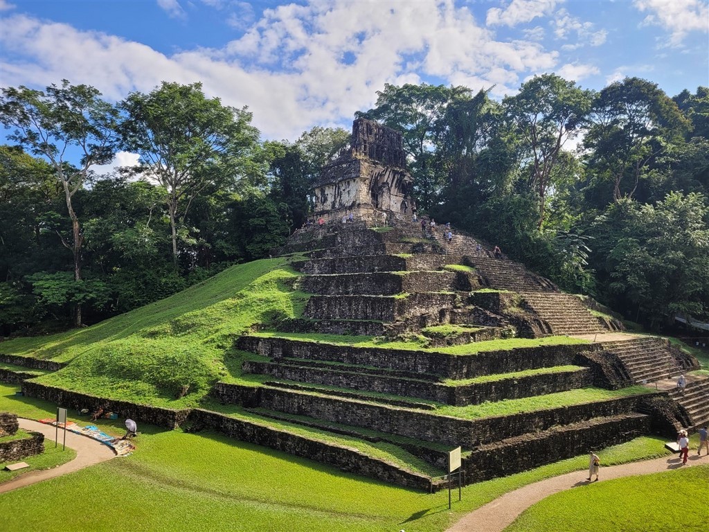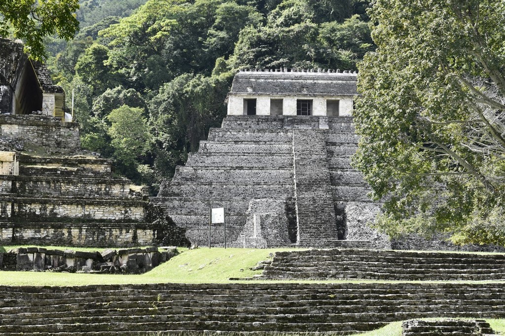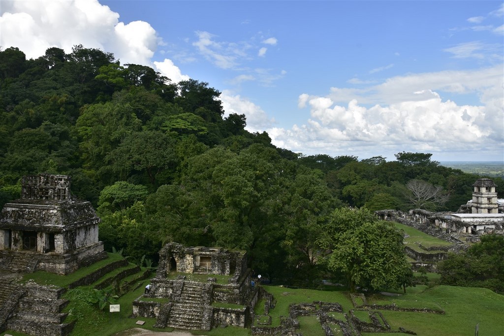 Le site maya de Palenque est assez petit mais son charme réside dans le fait qu’il se trouve dans la jungle et que nous entendons les singes hurleurs. A force de chercher, nous finissons par les voir de près. Ils sont impressionnants.