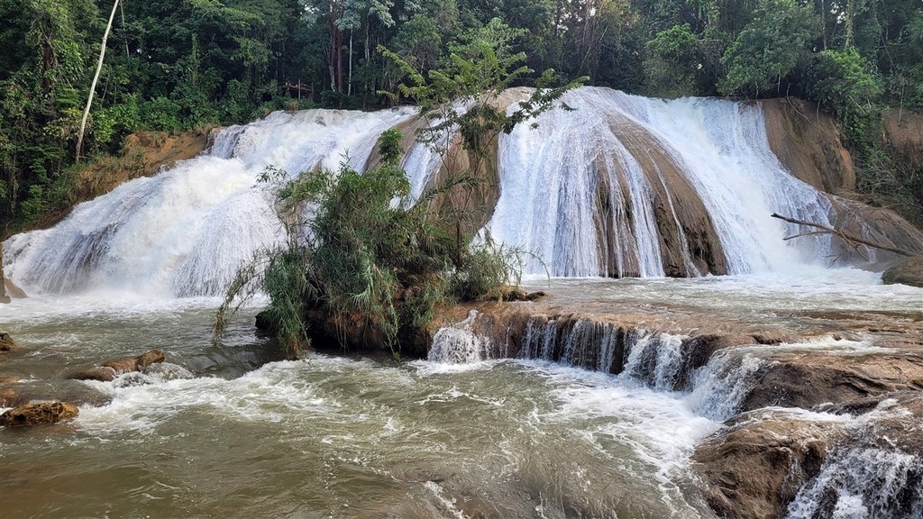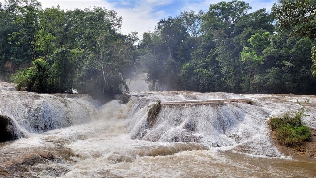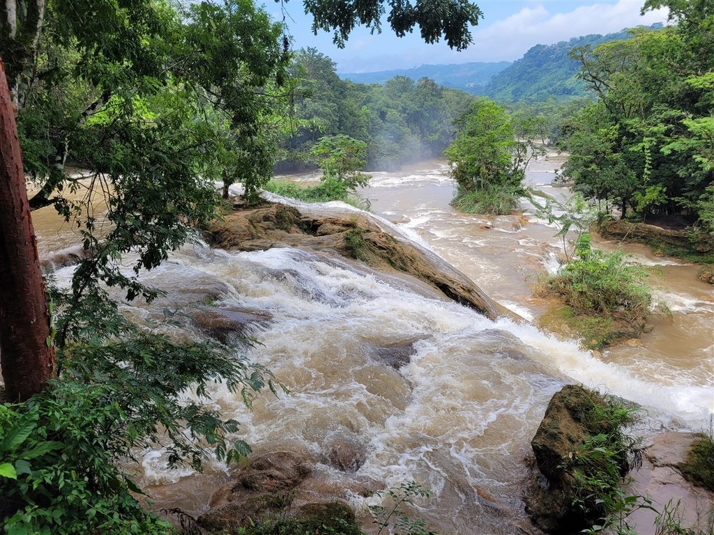 Après un arrêt aux cascades de Misol Ha, le parking de Agua Azul servira de bivouac pour deux jours mais il pleut tous les jours et nous ne verrons pas l’eau bleue des multiples vasques comme nous aurions aimé.