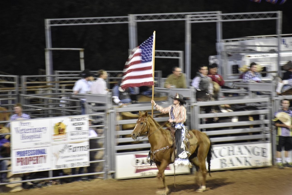 L’attente se fait en musique country. Le show commence par des remerciements : remerciements aux notables et diverses personnalités de la ville, aux fermiers qui nourrissent la population, aux camionneurs qui acheminent toutes les denrées à travers le pays. Puis, il y a l’hommage à la patrie, aux vétérans. Tout le monde est debout la main sur le cœur lors de l’hymne américain.
