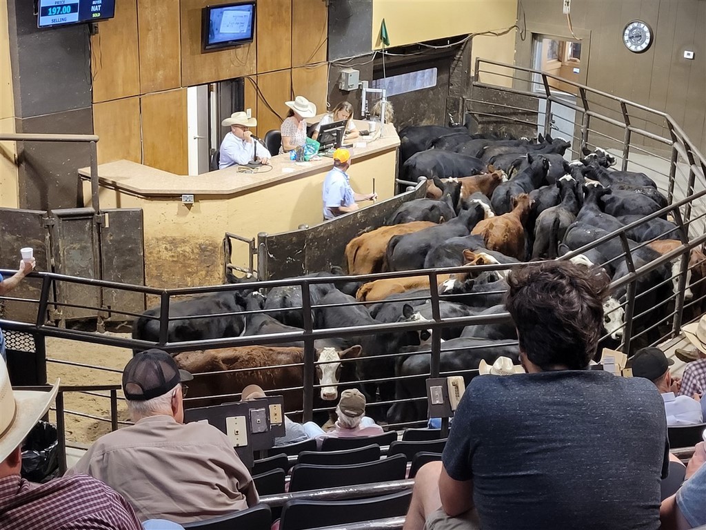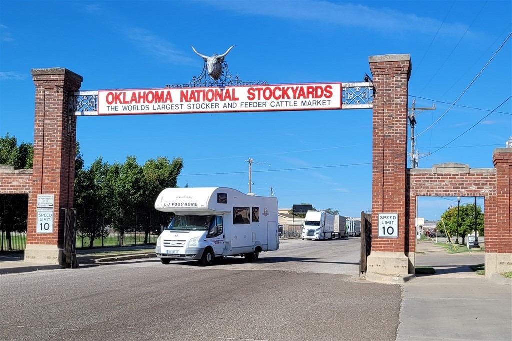 Mais le lendemain, nous sommes au Oklahoma National Stockyards : ça signifie parcs à bestiaux National de l’Oklahoma. Nous venons assister à la vente aux enchères des vaches. 6000 têtes doivent être vendues ce jour. Nous regardons déjà médusés tous les parcs à bestiaux, c’est immense. Les cow-boys à cheval font passer les vaches d’un parc à l’autre et jusqu’à la salle des ventes. Arrivés dans la salle des ventes, nous nous asseyons et regardons. Les bestiaux entrent d’un côté de la salle et ressortent après quelques minutes de l’autre côté après avoir fait un petit tour devant le public. Le propriétaire annonce un prix de vente : après recherche, ce prix correspond à 100 livres de bestiaux, soit 45kgs en gros. Le commissaire-priseur lance les enchères, clame ou plutôt chante les prix. On dirait le son d’un didjeridoo, l’instrument de musique australien. On ne reconnait aucun chiffre. Les acheteurs ne sont que des hommes et la moitié bien sûr avec chapeau et des bottes. Ils font de petits gestes pour indiquer s’ils font une offre. Ces enchères datent de plus de cent ans.