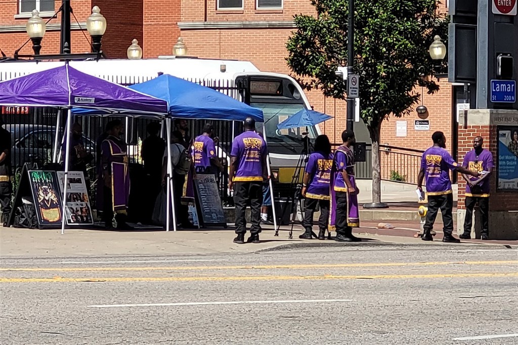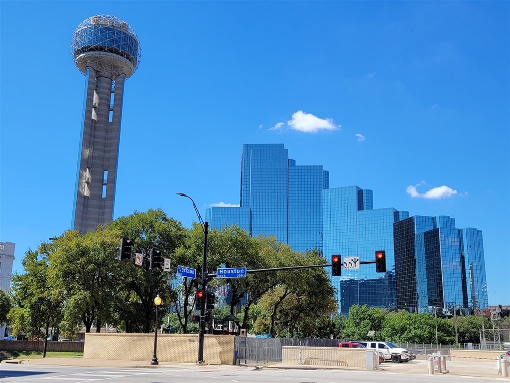 Un petit tour de Dallas nous permet d’avoir un aperçu de la ville. Petit tour car on se répète, on n’aime pas les villes. Mais on doit être masos car on les visite quand même. Nous cherchons le bâtiment où Lee Harvey Oswald a tiré et assassiné Kennedy le 24/11/1963 . Le mémorial de Kennedy quant à lui est particulièrement moche : un bloc de béton et au milieu une plaque. Un groupe de blacks clame la parole de Jésus à un coin de rue, tout habillés de violet. Le downtown est malgré tout sympathique à visiter et nous trouvons de quoi prendre quelques photos.