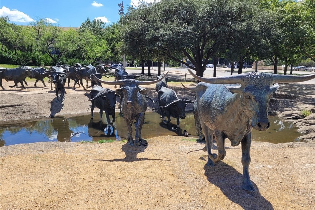 On quitte l’Oklahoma pour le Texas et nous descendons sur Fort Worth qui se situe à 30kms de Dallas. Dans la série on aime les cow-boys nous assistons au défilé des longhorns aux Stockyards de Fort Worth. Les longhorns sont des vaches à très longues cornes et elles sont l’emblème du Texas. Mais ce défilé est plus pour les touristes et nous sommes évidemment un peu déçus. Ça ne nous empêche pas de laisser les touristes dans les magasins de souvenirs et d’aller voir ces bêtes dans leur enclos sans que personne ne nous embête. Bon, on a fait quand même un petit tour dans les boutiques, mais chut …