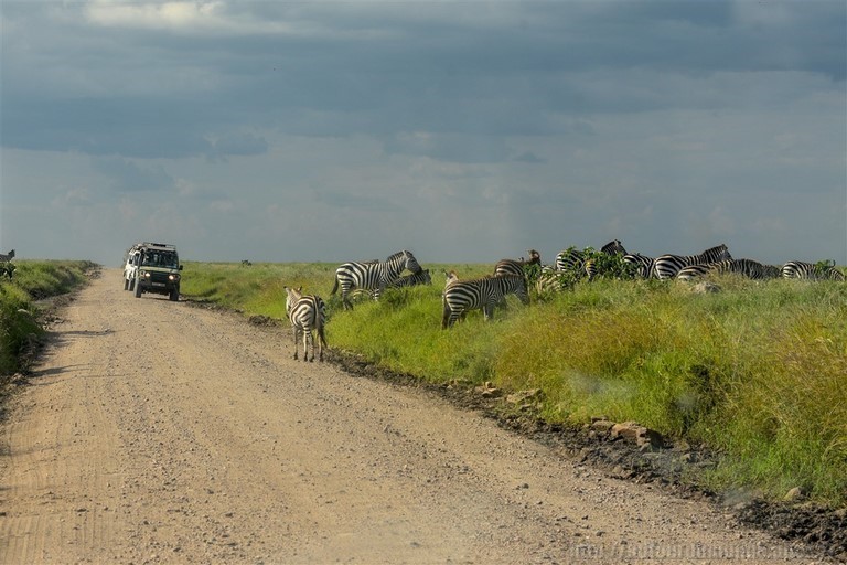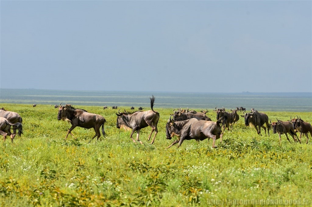 C’est parti, il faut attaquer les choses sérieuses : les bébêtes et des grosses avec des crocs et qui rugissent ! Lors de notre séjour en Namibie il y a presque 10 ans, nous avions été frustrés de ne pas avoir vu les fauves. C’est pour ça aussi que nous sommes passés par une agence de voyages : voir le Big 5 est une obligation et notre chauffeur et guide Godlisten nous le promet. Pour rappel, le Big 5 : lion, léopard, éléphant, buffle et rhinocéros. Direction le parc Serengeti et la grande migration des gnous et zèbres ! Sans oublier bien sûr le cratère NGorongoro.
