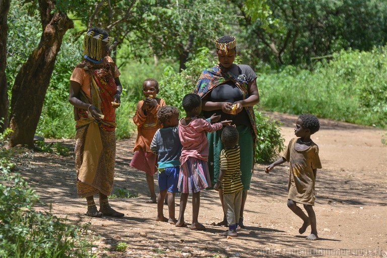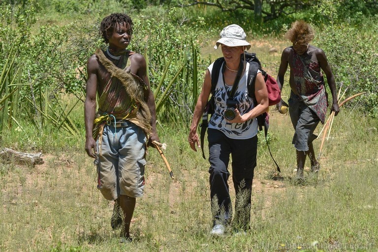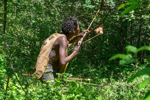 Les Hadzabés sont essentiellement des chasseurs, à l’arc. Ils vivent de leur chasse et de la cueillette et de la récolte de miel. Ils ont bien évidemment leur propre langage, les Clics.